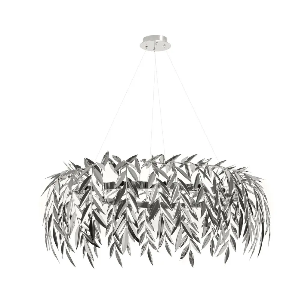Best Lighting design at the iLuxury Awards 2021Resulting from a trip S.Miguel, the Azores chandelier recreates a weeping willow found near a lagoon and freezes a moment of contemplation.Born in the middle of the Atlantic Ocean, the archipelago of the Azores was formed by volcanic activity and belongs to the Portuguese territory. S. Miguel, the most exuberant of its islands, is a paradise covered in dense nature with hundreds of plant species that exhibit their different shades of green along the landscapes.The Azores chandelier is a luxuriant lighting piece made with handcrafted polished nickel leaves that subtly allow the rays of light to pierce them and illuminate the surroundings as a gift of nature.Product detailsHandcrafted in polished brass with nickel bath finish.Product optionsPolished brass finish.Weight 7Kg 15,5 lbsElectrical CharacteristicsMains: 3 Wires connection - Live ; Neutral ; EarthFrequency: 50 to 60HzLamp: G9 ; 14x15W max.USAVoltage: 110-130VACEUROPEVoltage: 220-240VACMade to order. Custom sizes and other finishes are available under request.Designed by Joana Santos Barbosa for InsidherLand, 2019. Handmade in Portugal.