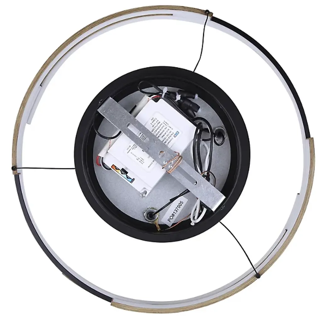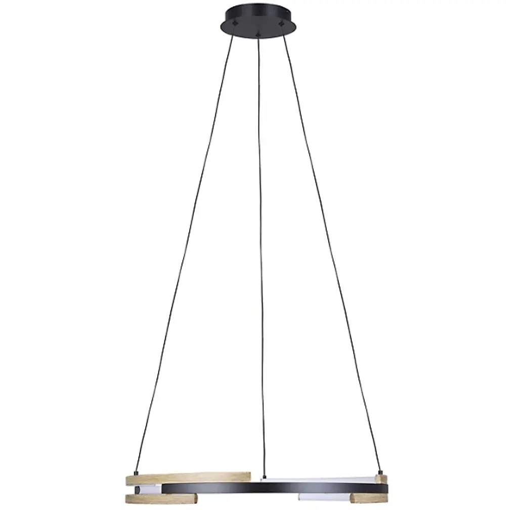 Make a bold statement with the Azria LED Chandelier from Canarm. It features a sleek, clean-lined ring suspended from slender wires for a dynamic look. Its modern and luxurious halo-style design showcases a stunning two-tone matte black and brushed brown finish. The integrated LEDs wrap around the interior, casting a warm, inviting glow and transforming any space with sophisticated illumination. It is perfect for contemporary settings and adds elegance and style while redefining your lighting experience.