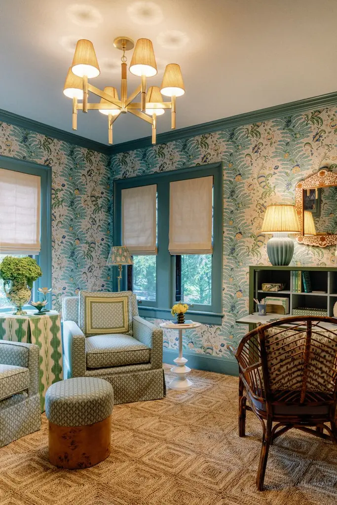 Wrapped, woven, and precision-fitted elements elevate the traditional silhouette of Azrin. Creating an exciting conversation between natural and manmade elements, the metalwork supports grasscloth-covered stems and shades. Available as a 1-light sconce and a 6 and 9-light chandelier, Azrin fixtures layer well together in a contemporary space. *Due to the one-of-a-kind nature of the medium, exact colors and patterns may vary slightly from the image shown.