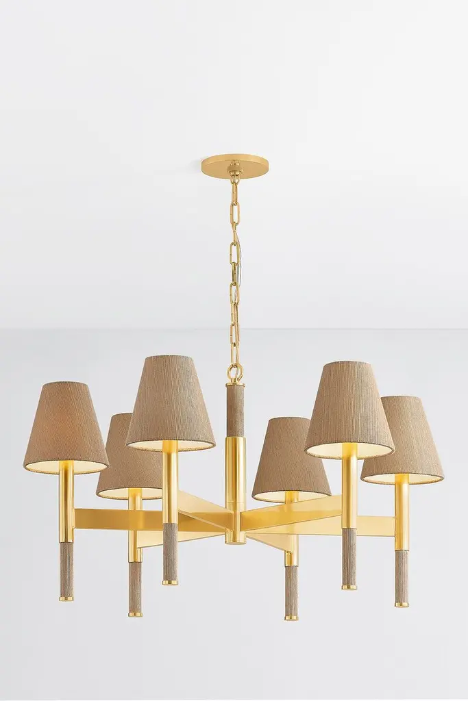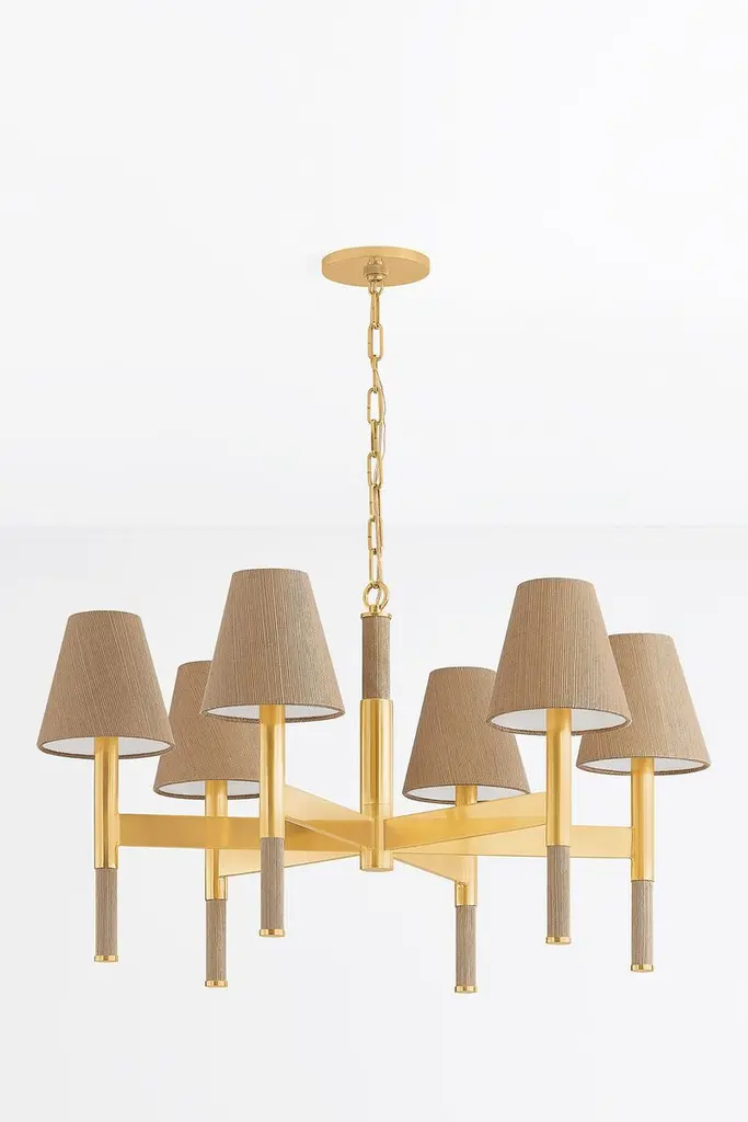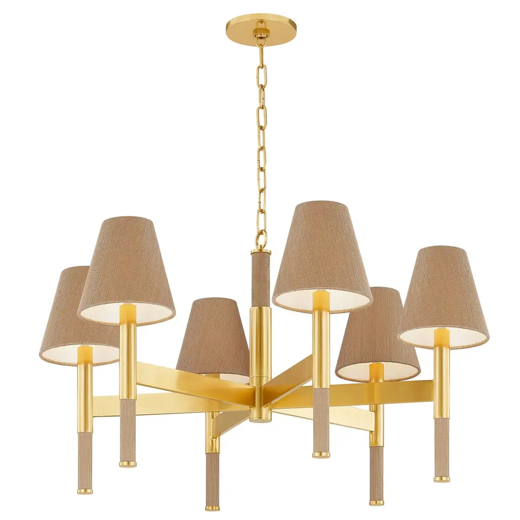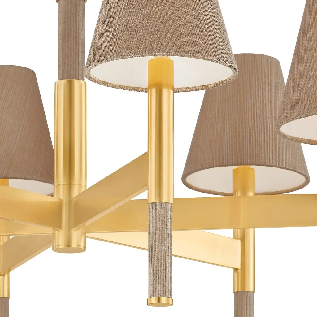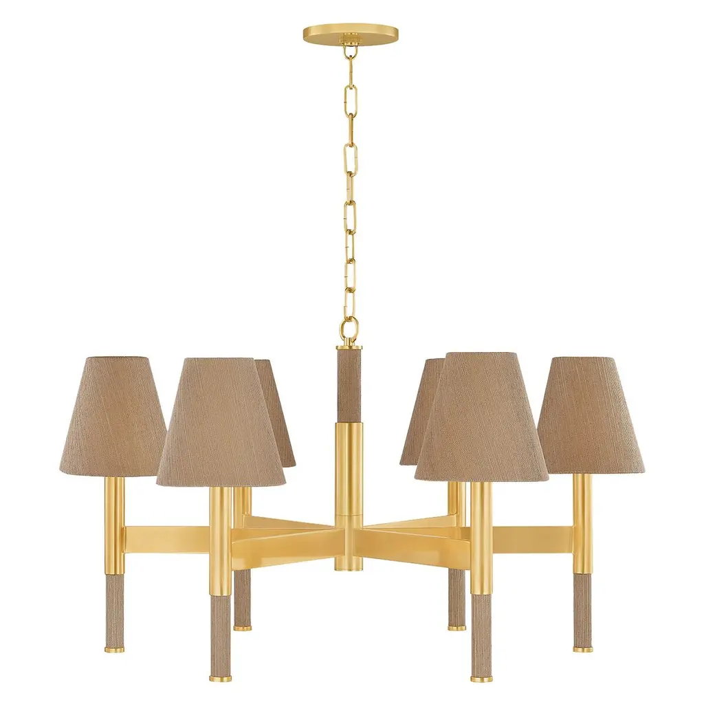 Azrin Chandelier, Aged Brass/natural Grasscloth