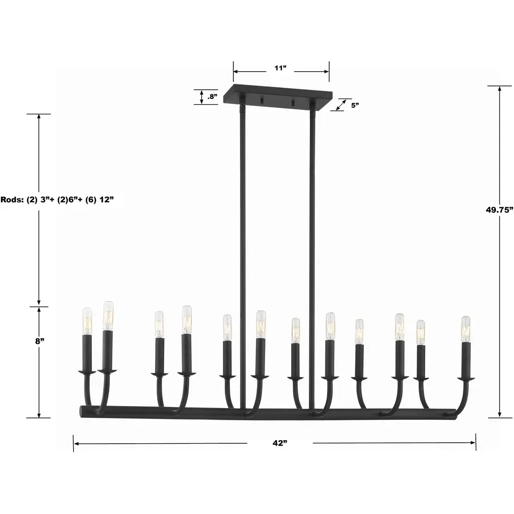 Bailey 12 Light 42 Inch Matte Black Chandelier Ceiling Light
