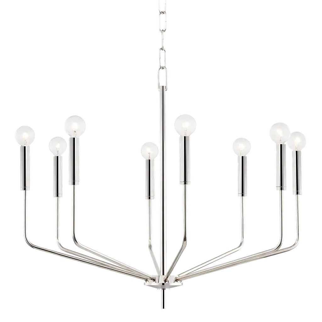 Create a crescendo of beautiful light when you turn on the Bailey 2-Tier Chandelier from Mitzi. It’s a clean, stylish take on the traditional chandelier. Like a traditional chandelier, it delivers an instant wow factor, whether over a foyer, living room, or dining room. Looking at it from below, you can’t help but be entranced by the radiating and uplifting movement of the slender arms. Sleek candle-inspired holders give a handsome finishing touch to the dynamic silhouette. Top each one with globe-style lamps for a touch of charm and a surge of warm, comforting light.