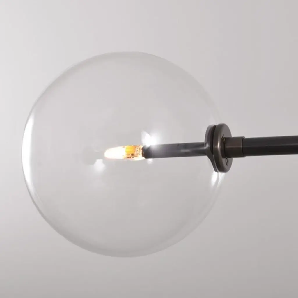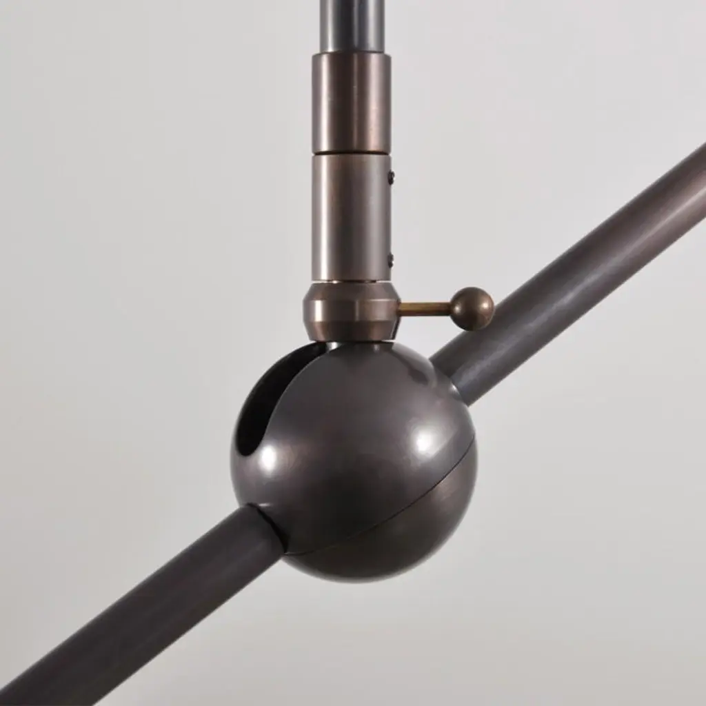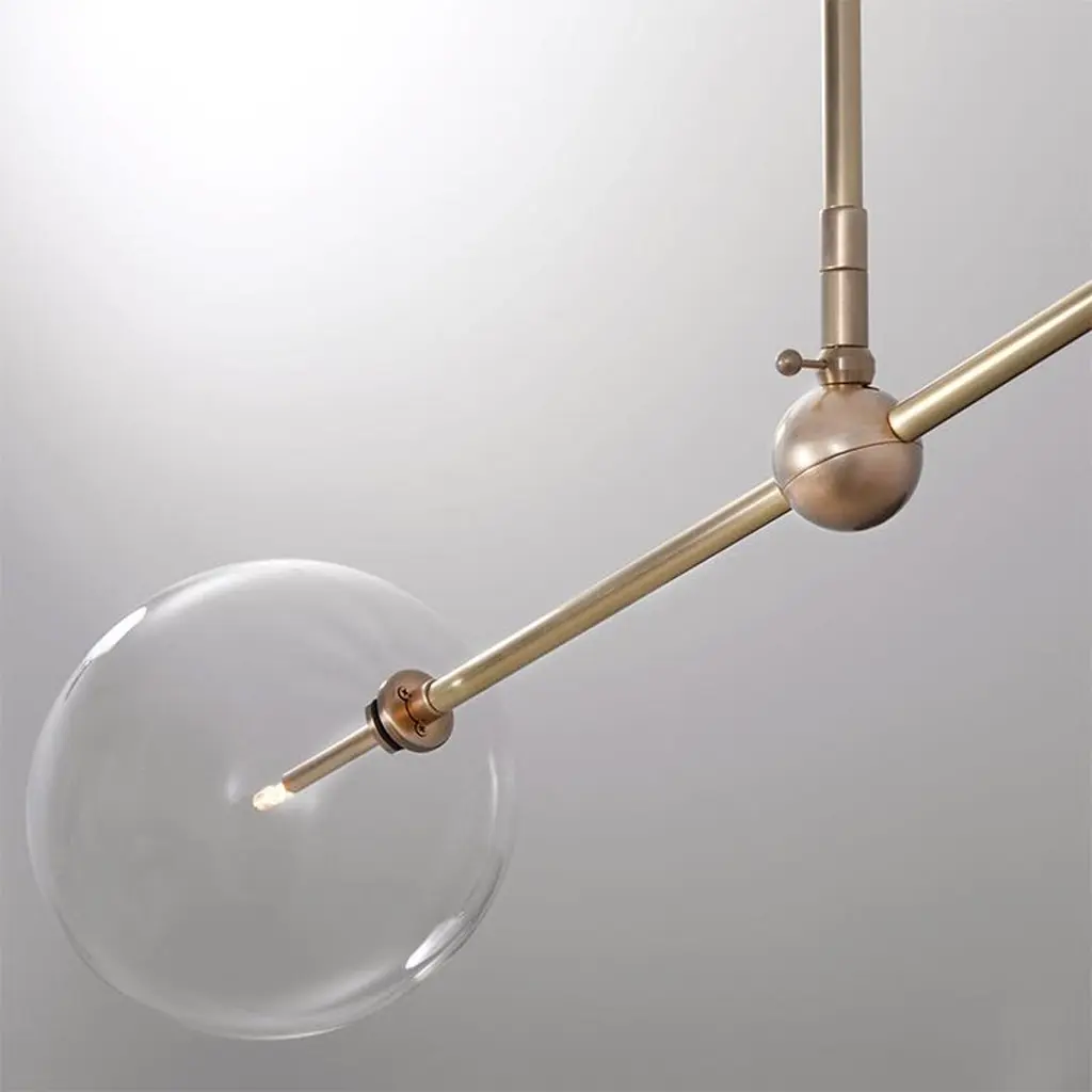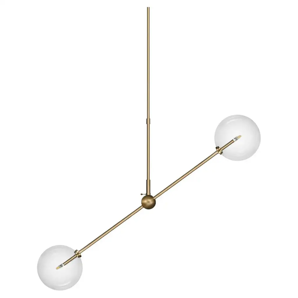 Brass 150 x 150 contemporary chandelier by Schwung.Dimensions: D 15 x W 90.4 x H 163.3 cm.Materials: solid brass, hand-blown glass globes.Finish: natural brass. Available in finishes: black gunmetal or polished nickel. Also available in large.All our lamps can be wired according to each country. If sold to the USA it will be wired for the USA for instance. Made entirely of solid brass and handblown glass globes. Could be dimmable. Adjustable angles. Measures: heights available: 73.4 cm, 88.4 cm or 118.4 cm. Schwung is a german word, and loosely defined, means energy or momentumm of a positive manner. Synonyms: Verve, zest, panache, momentum.Mission:Developing lighting fixtures through simple and timeless materials, sustainably; we are committed to creating quality products that last. Beginning with the design we are constantly refining aesthetic and function. Both in the lamps themselves and throughout the manufacturing process we pursue a holistic approach to efficiency, and the reduction of environmental impact.Concept:Schwung is a lighting concept, connecting aesthetic and quality through matter. An exploration of history, forms and function, elegantly fulfilling an essential need of modern life, capturing light. Our pieces play with architecture or create spaces of their own. Founded by Dominique sente (Belgium) and rudi nijssen, (Netherlands). What began as a curiosity for objects, a venture in collecting, curating and trading antiques-became a passion to create original designs.Process:From the beginning, schwung home has striven for cutting-edge and quality lighting, handcrafted in Europe. Emphasizing brass and glass, which are not only durable but can be reused indefinitely, our lamps are 98% recyclable. Today the company operates out of an integrated design and manufacturing facility in Poland. This local approach allows us to significantly shorten the product lead time and greatly improve quality standards.All our lamps can be wired according to each country. If sold to the USA it will be wired for the USA for instance.