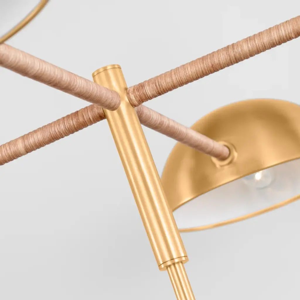 The Balleroy brass lighting series Christiane Lemieux is a true embodiment of design and style. This collection boasts a perfect dome shape designed for timeless beauty, each piece meticulously crafted to captivate and illuminate your space. What sets this collection apart is the unique incorporation of rattan-wrapped arms and stems, adding a touch of organic detail and warmth to the luxurious brass finish. The intertwining of these materials creates a harmonious blend of tradition and contemporary design, making each fixture not just a source of light but a work of art. Elevate your interior decor with the beauty of our Balleroy lighting line, where exquisite shapes meet the rustic allure of rattan, resulting in a truly designed lighting experience.