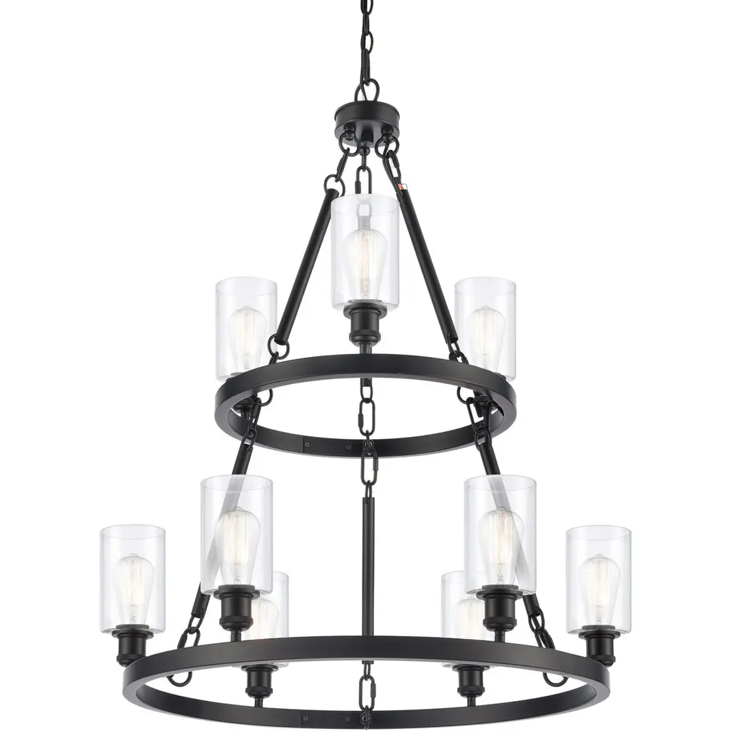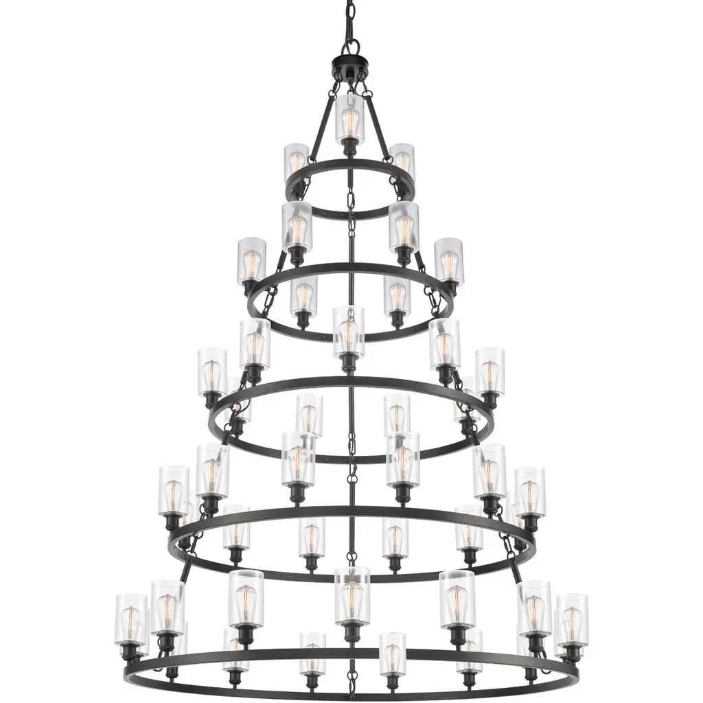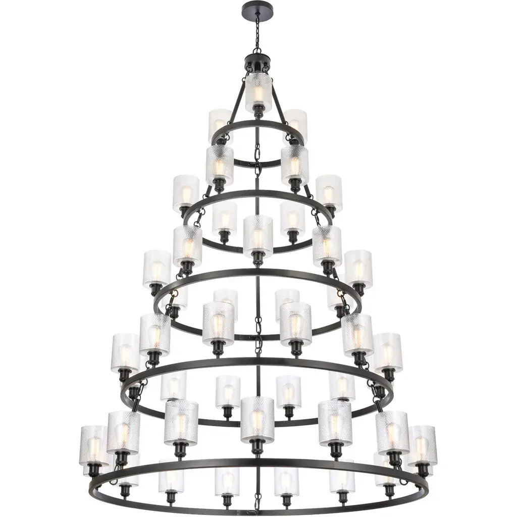 Ballston Saloon Led 40 Inch Matte Black Chandelier Ceiling Light In Clear Glass, Ballston