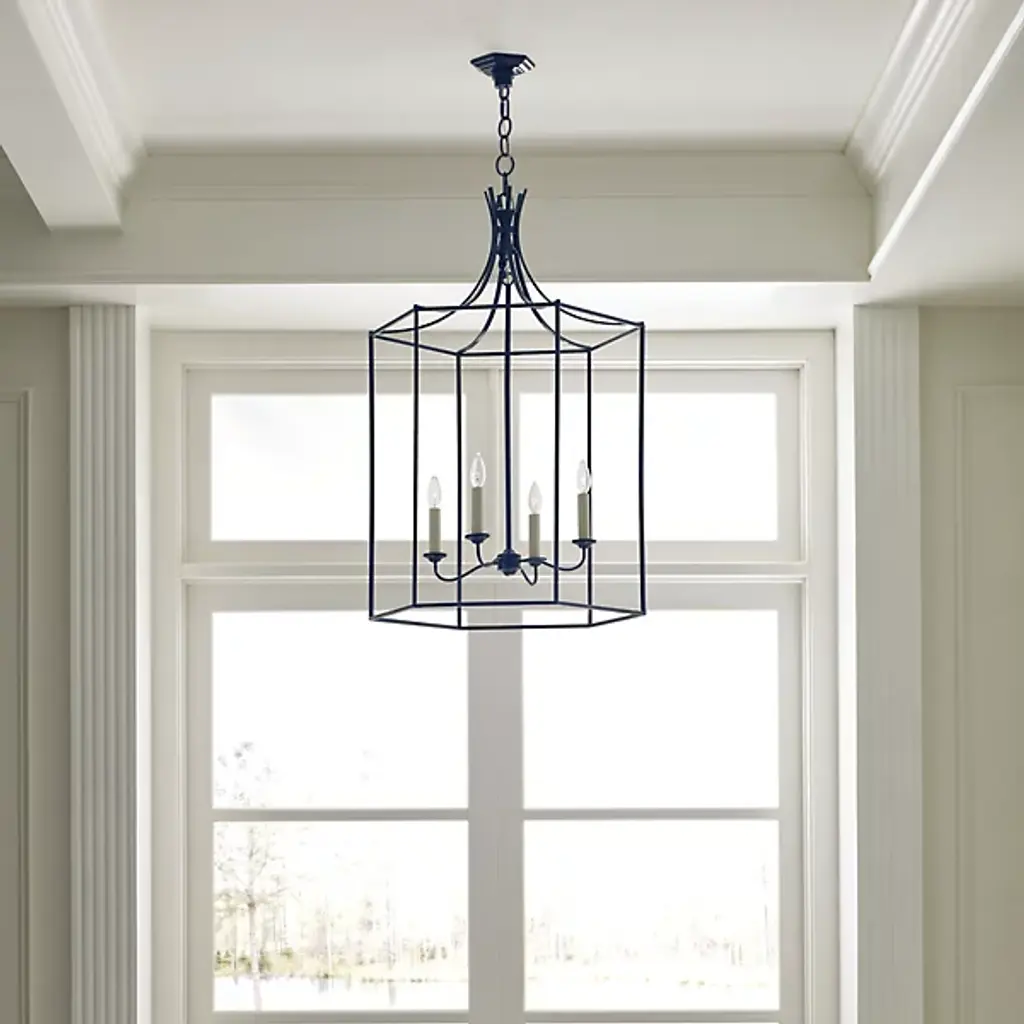 A cheerful transitional piece to brighten any space. Bantry House Chandelier by Visual Comfort Studio, formerly known as AH by Alexa Hampton, showcases its classic candelabra inside an open and airy metal frame. Its layered canopy sends a chain to a set of flared stems that form the top of the piece. The geometric structure balances the candelabra’s softly curving arms while short candleholders prop exposed bulbs that create a blanketing layer of light for the room.