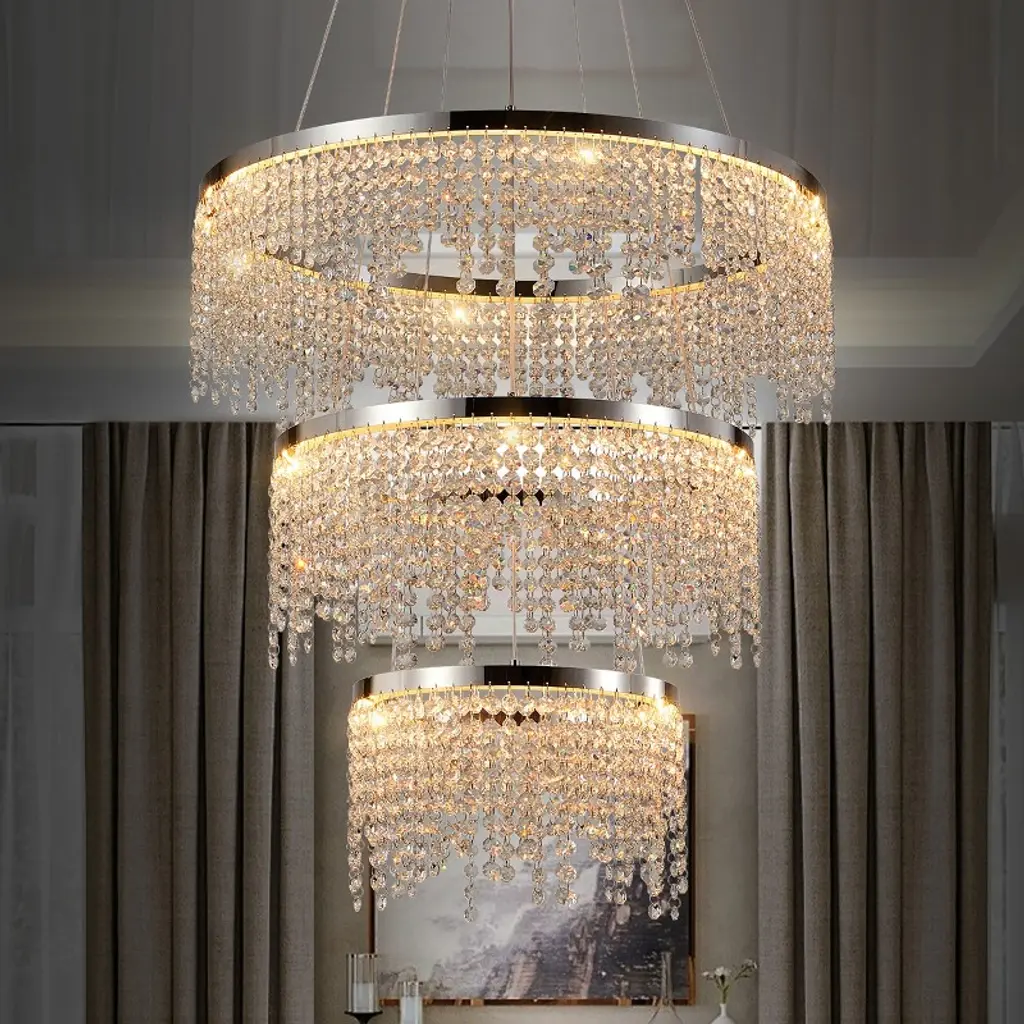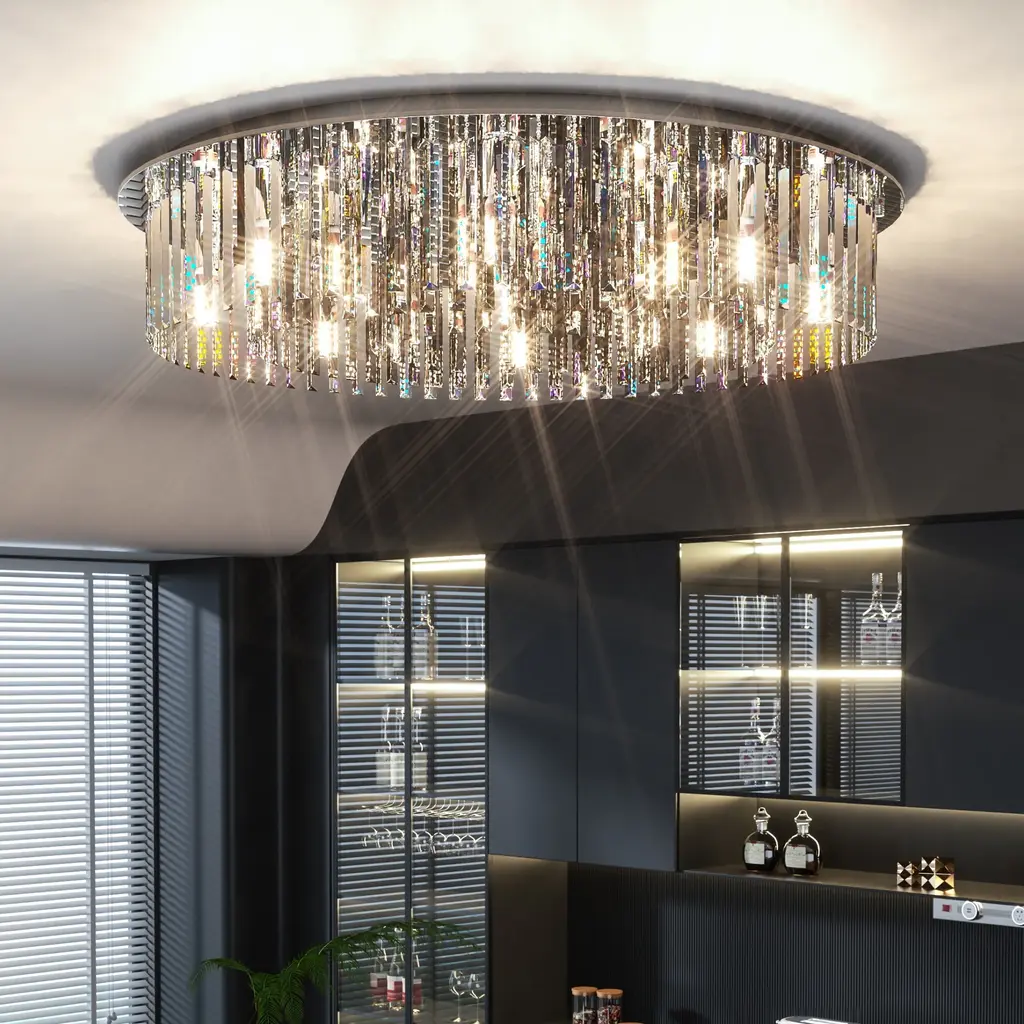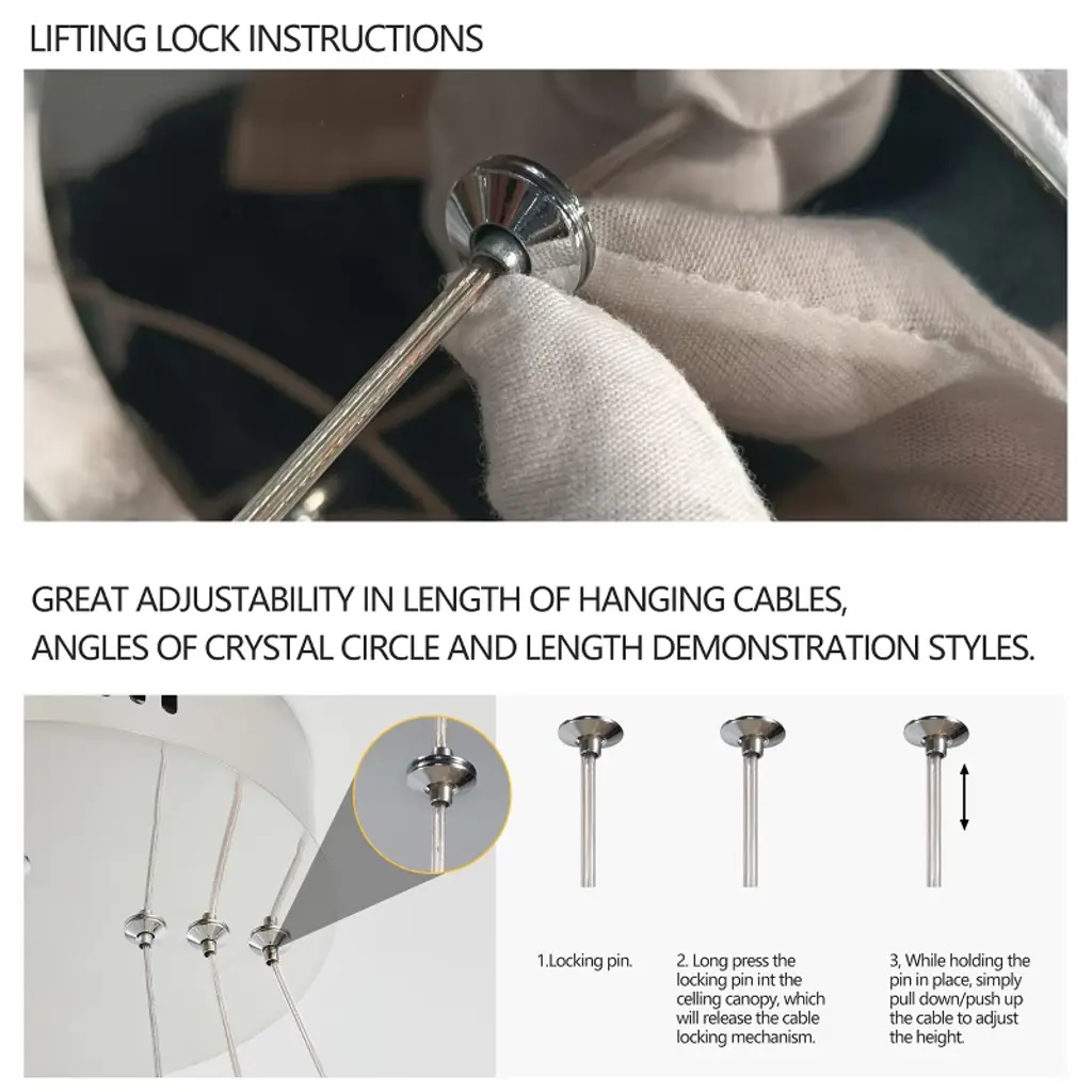 Elevate your interiors with this 16-inch Luxury Crystal LED Chandelier, where timeless elegance meets modern innovation. Crafted from polished chrome-finished stainless steel and genuine K9 clear crystal, this fixture creates a dazzling cascade of light while offering adjustable height and customizable ambiance. Ideal for dining rooms, foyers, or master suites, it combines sophisticated design with practical adaptability.SpecificationsMaterial & Finish: Stainless steel + K9 crystal construction with mirror-polished chrome finish.Dimensions: 16-inch diameter; Adjustable suspension wire (59" max height).Light Source: Integrated 16W LED (1,680 lumens | 80 CRI | Non-dimmable).Color Temperature: 3-step adjustable (3000K Warm White / 4000K Neutral White / 6000K Cool White).Power & Control: 110V hard-wired ceiling installation; On/off switch operation.Installation: Simplified ceiling-mount design for quick setup.