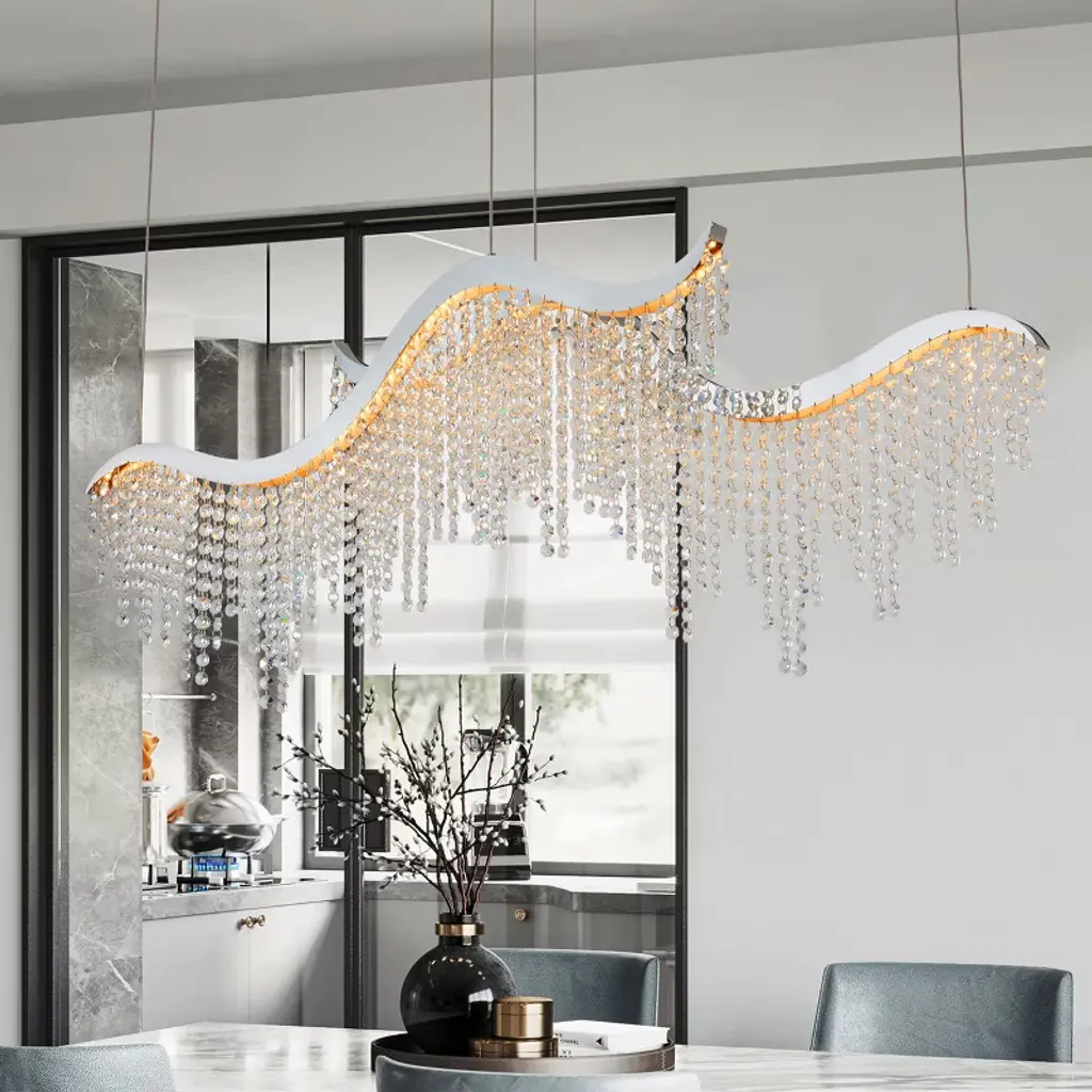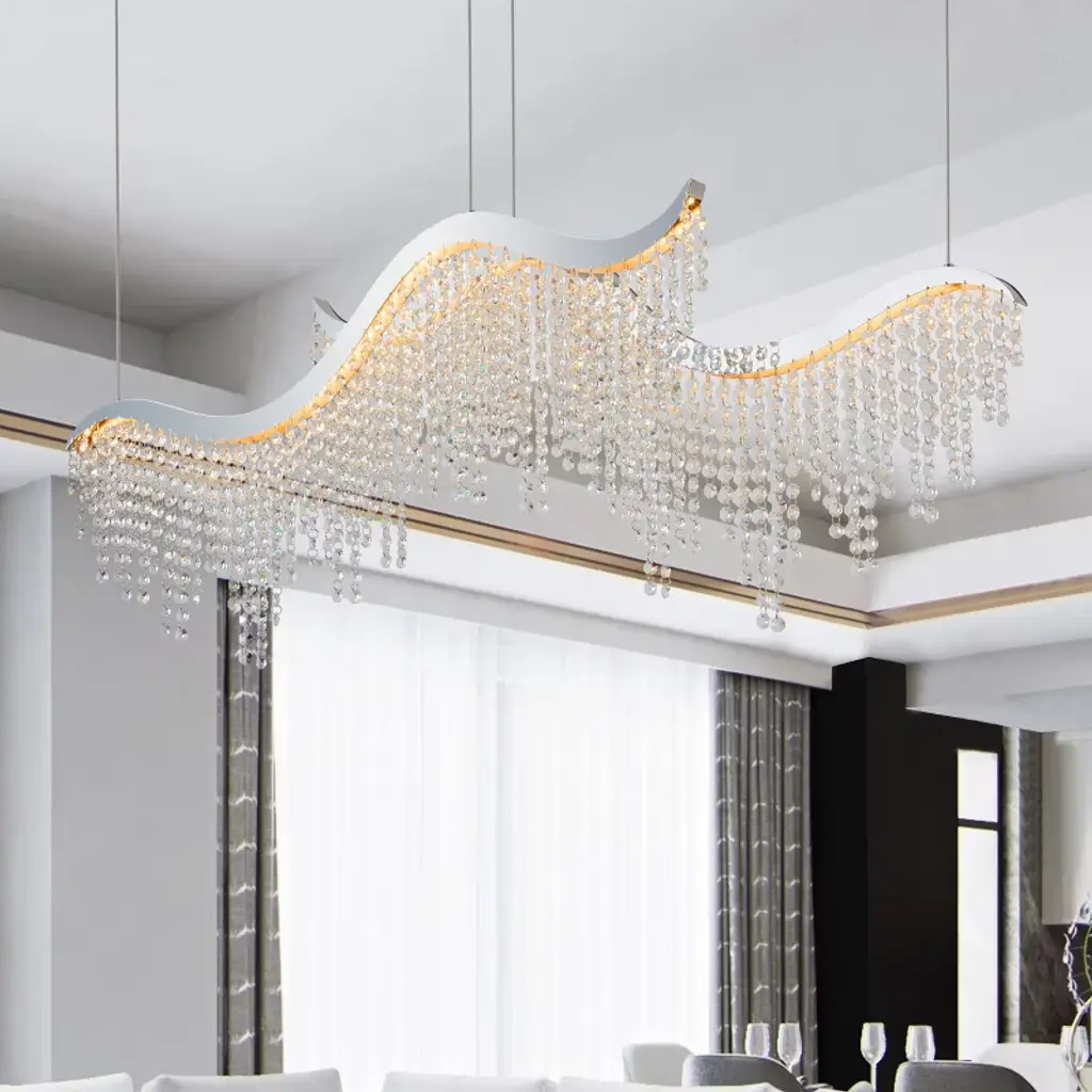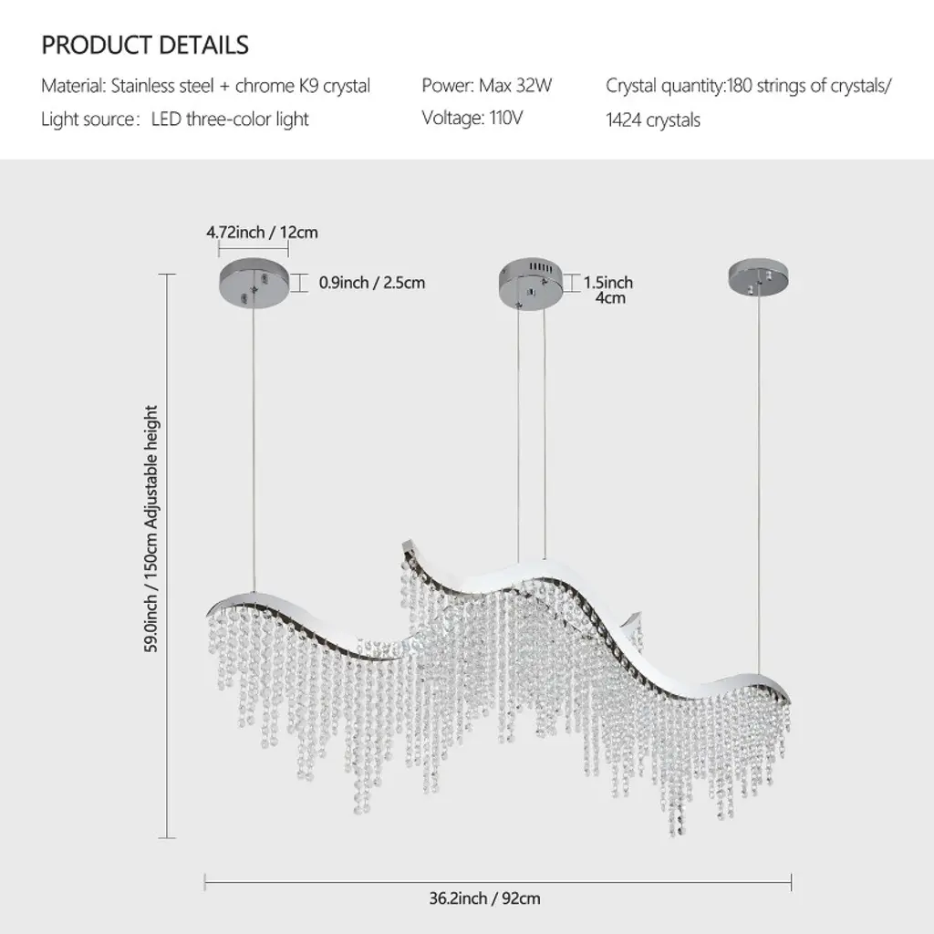 Baoure 36in Luxury Crystal Led Chandelier Chrome Modern Chandelier Adjustable Height And Color Temperature For Living Room Dining Room Bedroom