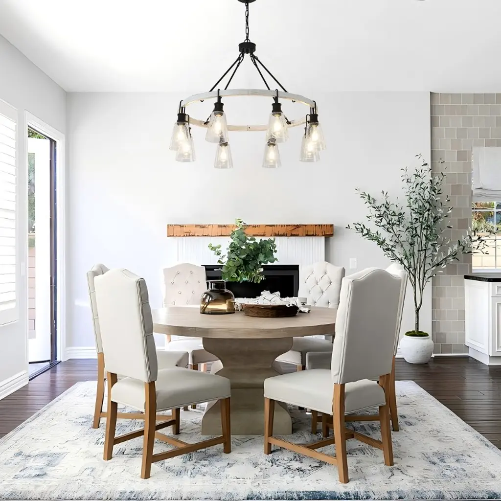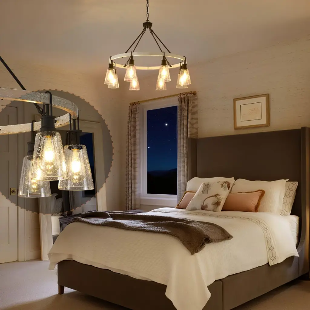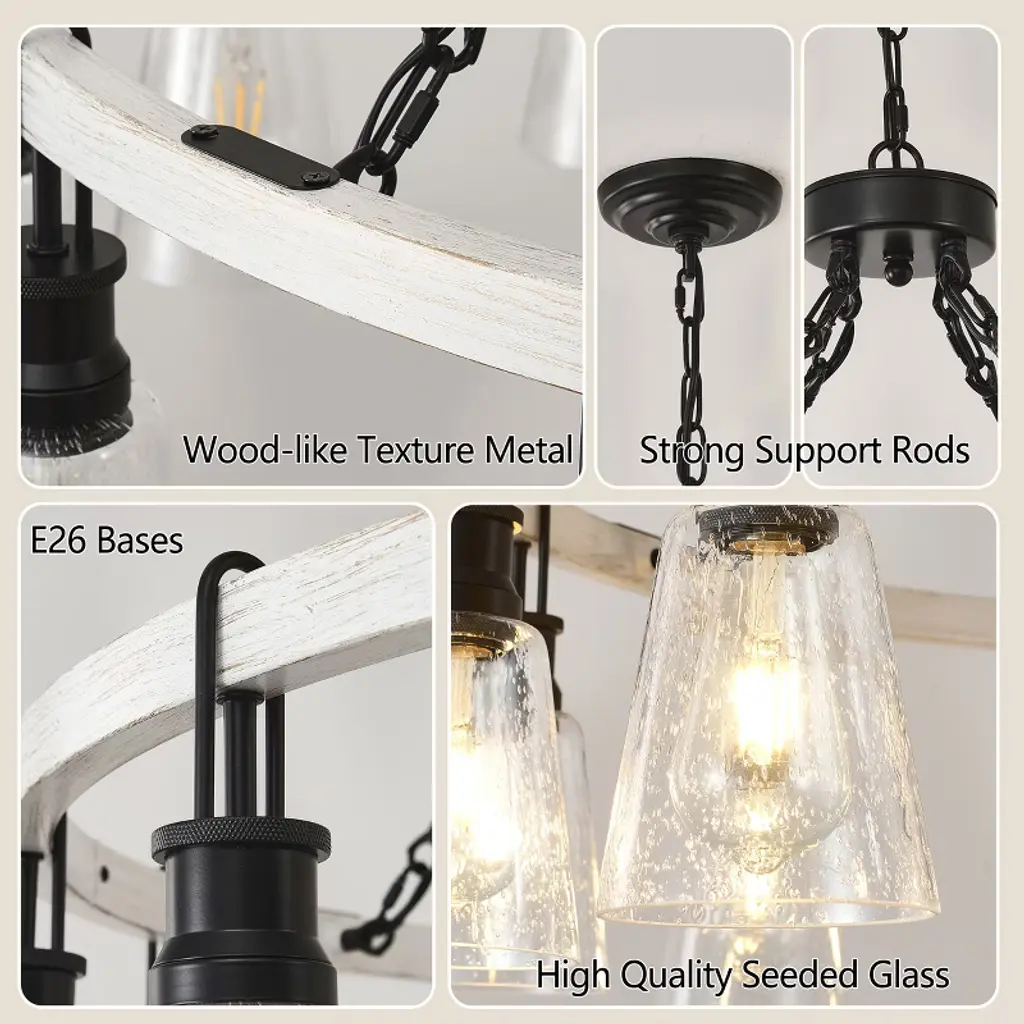 Baoure 8 Light Wagon Wheel Chandelier Farmhouse Rustic Pendant Light With Seeded Glass Shade For Dining Room Living Room