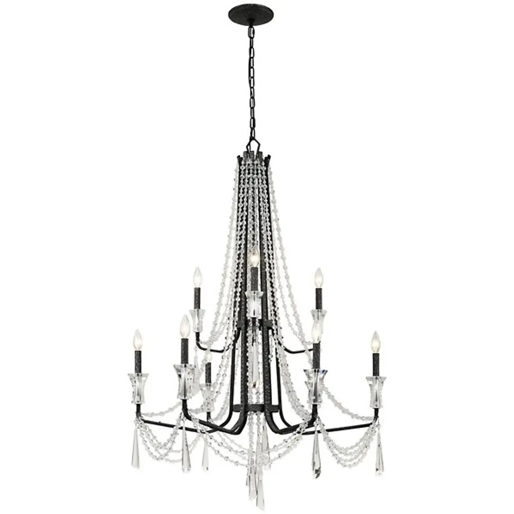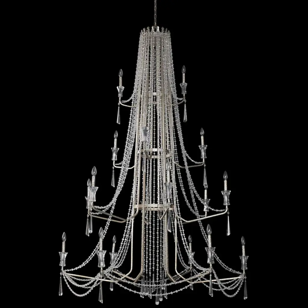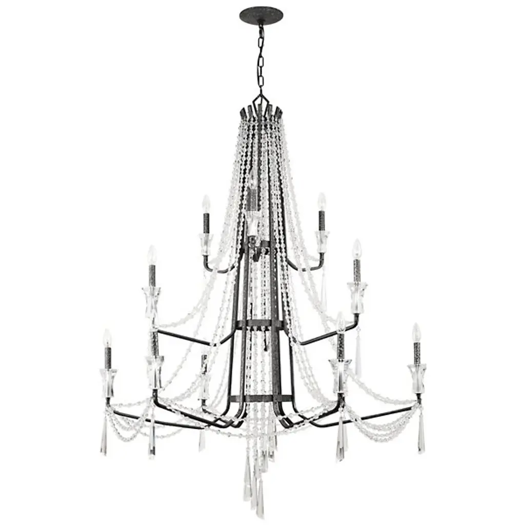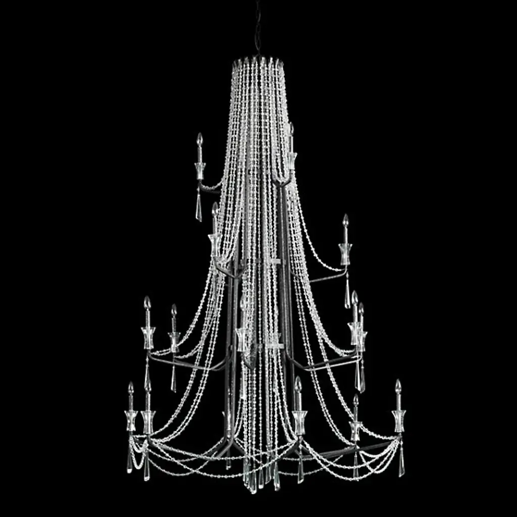 Sparkling Spanish design, on a grand scale. The Barcelona Large Chandelier by Varaluz is the ultimate in sparkling decadence and Spanish rusticity. It features a multi-tier frame made out of hand-forged and hand-textured recycled Steel. It’s an impressive structure that’s made infinitely more so with the generous bedecking of high-quality clear Optic Crystal. Numerous strands drape each tier, and a solid crystal bobeche adorns each exposed bulb holder. Turn the fixture on, and the entire piece dazzles with sparkling shards of ambient light. In a large dining room, living room, or spiral stairwell, this piece is a stunner.