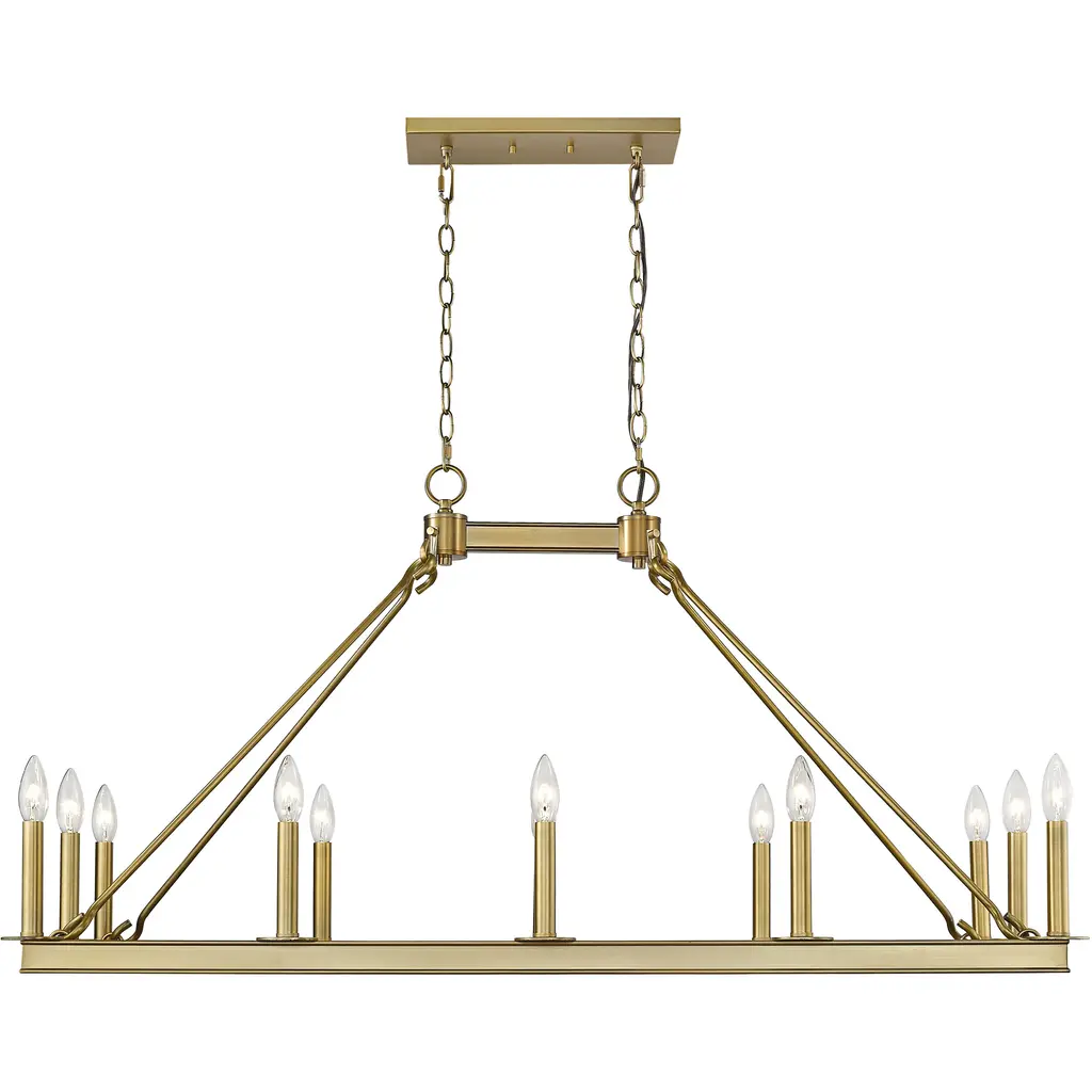 Barclay 12 Light 45 Inch Olde Brass Linear Chandelier Ceiling Light