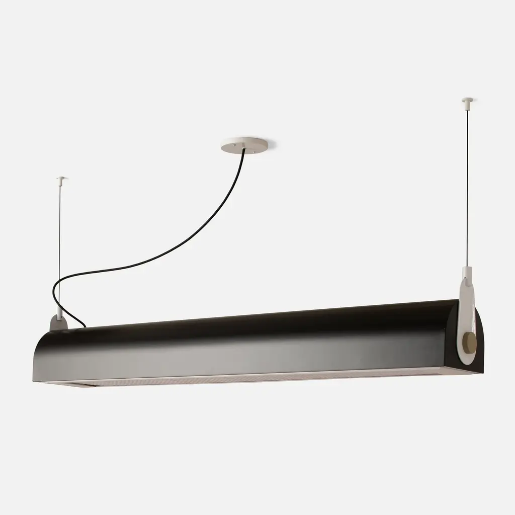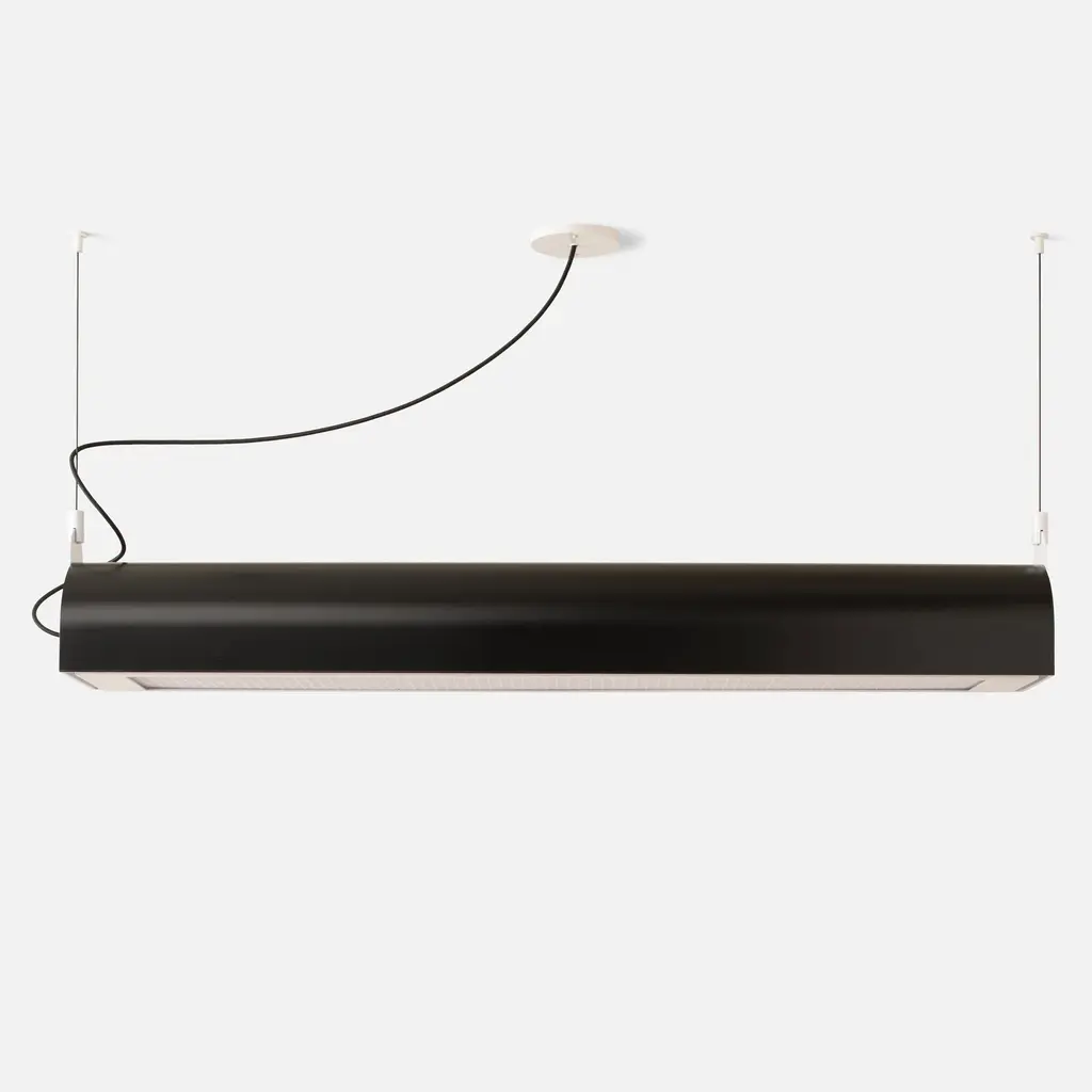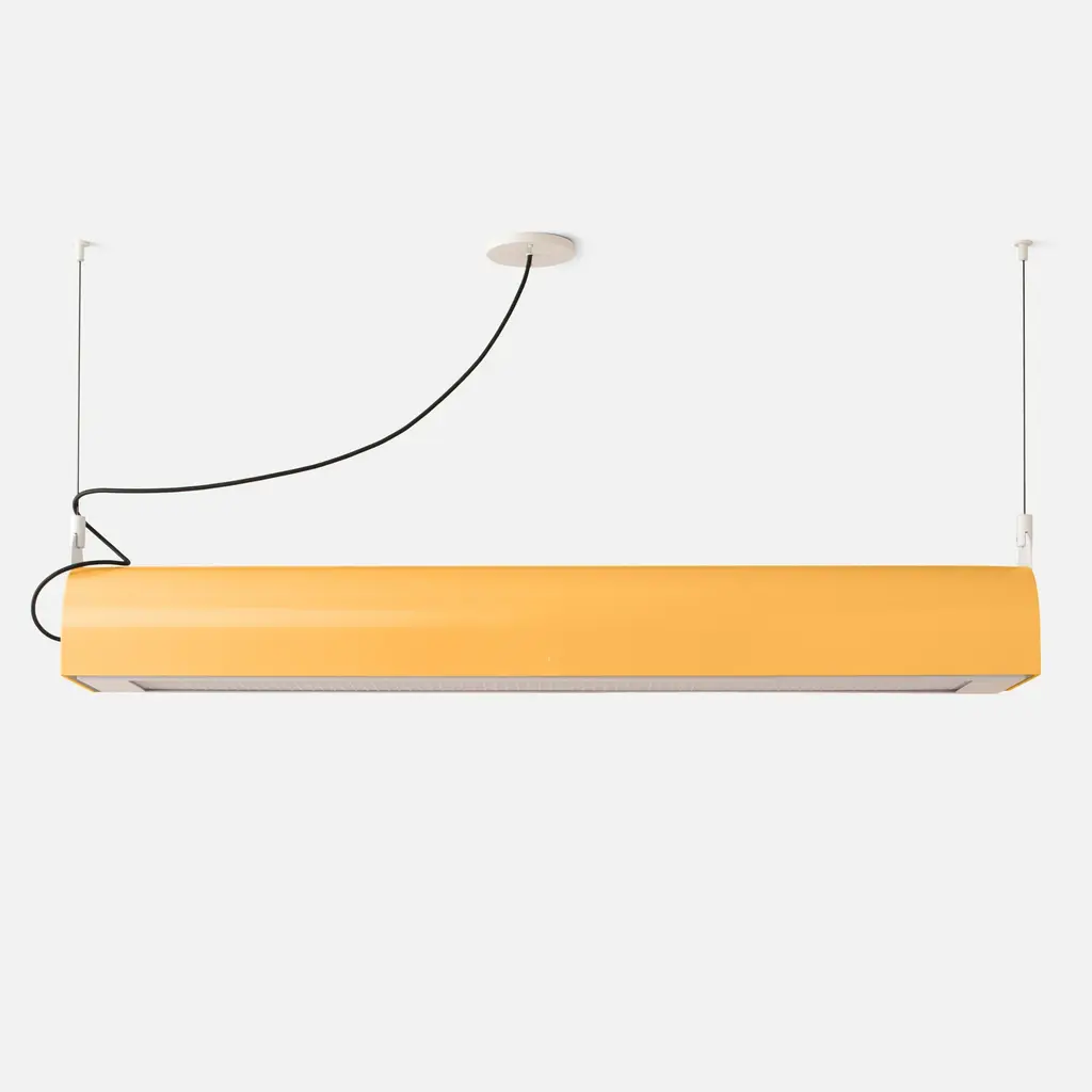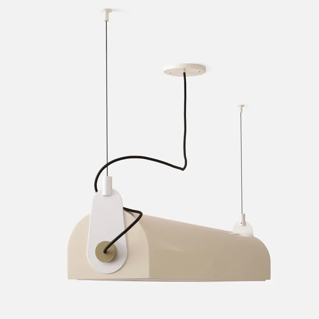 The Barnes Linear Chandelier gives a modern twist to the utilitarian office lighting of the mid-20th century. With its iconic diffuser gracefully enveloping two linear LED bulbs, it casts a soft, filtered glow, creating a warm and inviting atmosphere above dining tables, kitchen islands, and living spaces. For a touch of playfulness, the design features knurled details in contrasting colors on either side, creating a bold juxtaposition with the shade’s hue and adding character and whimsy to any space.