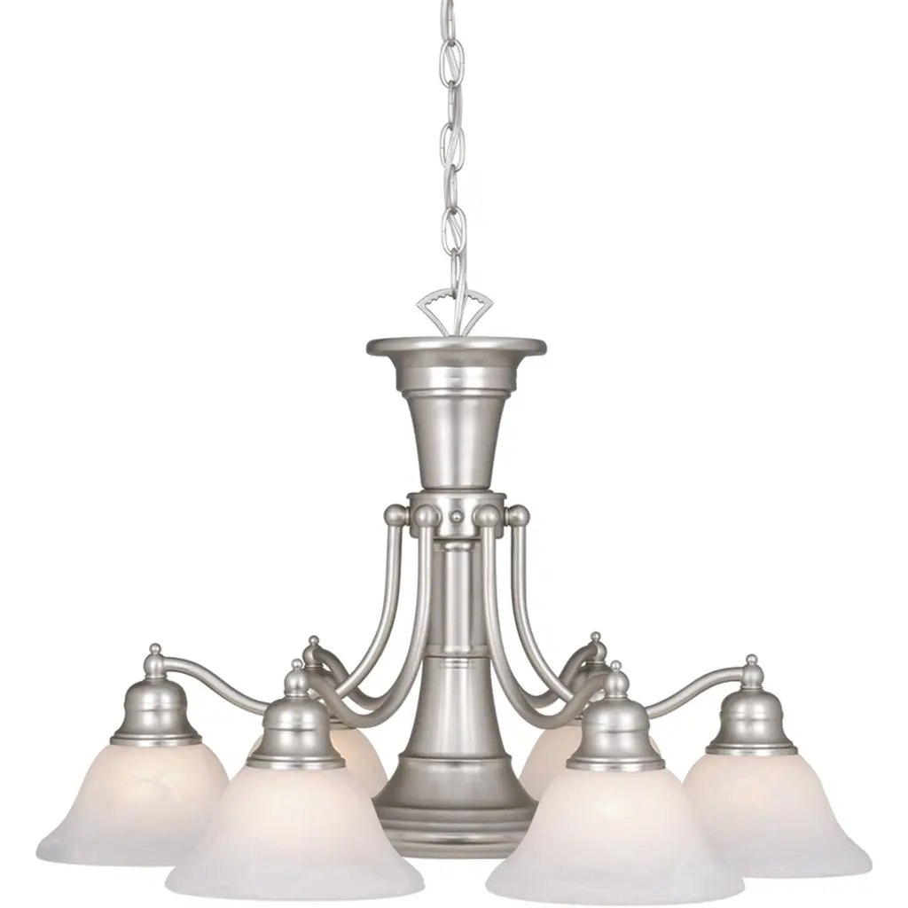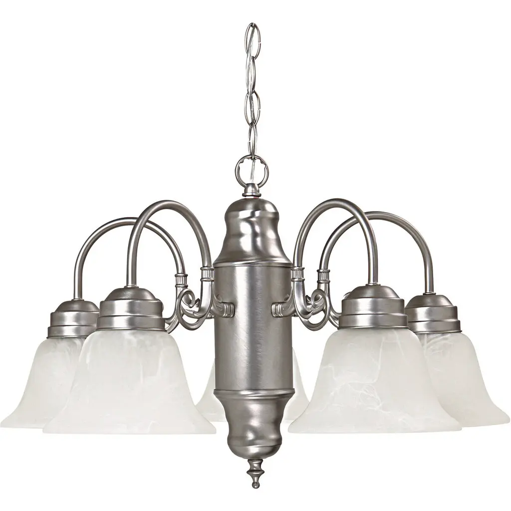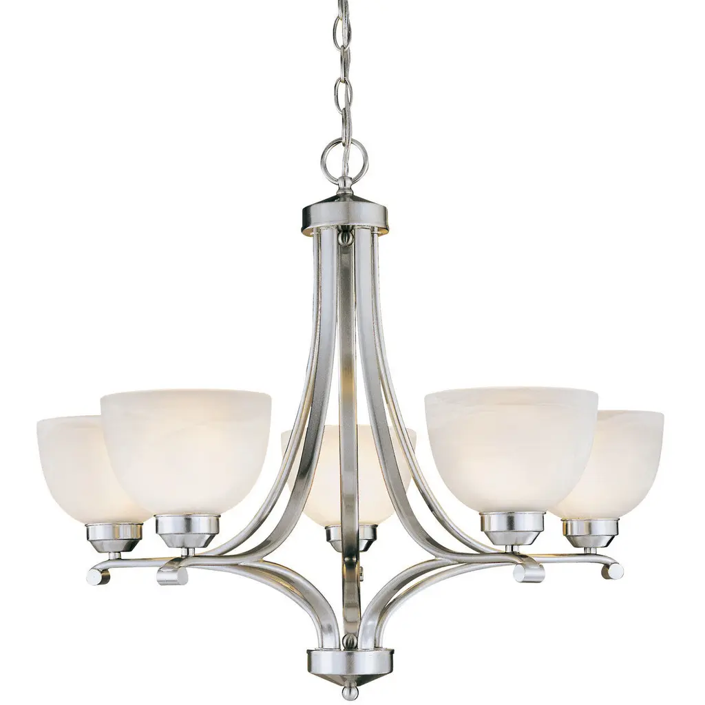 Basix 5 Light 26 Inch Satin Nickel Single-Tier Chandelier Ceiling Light In Frosted