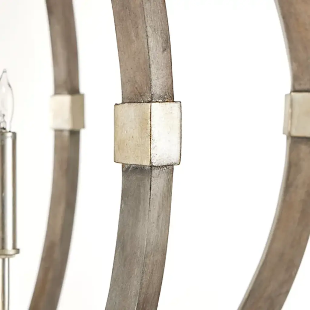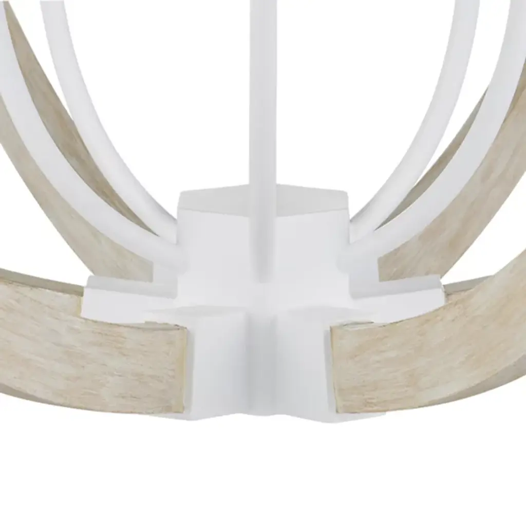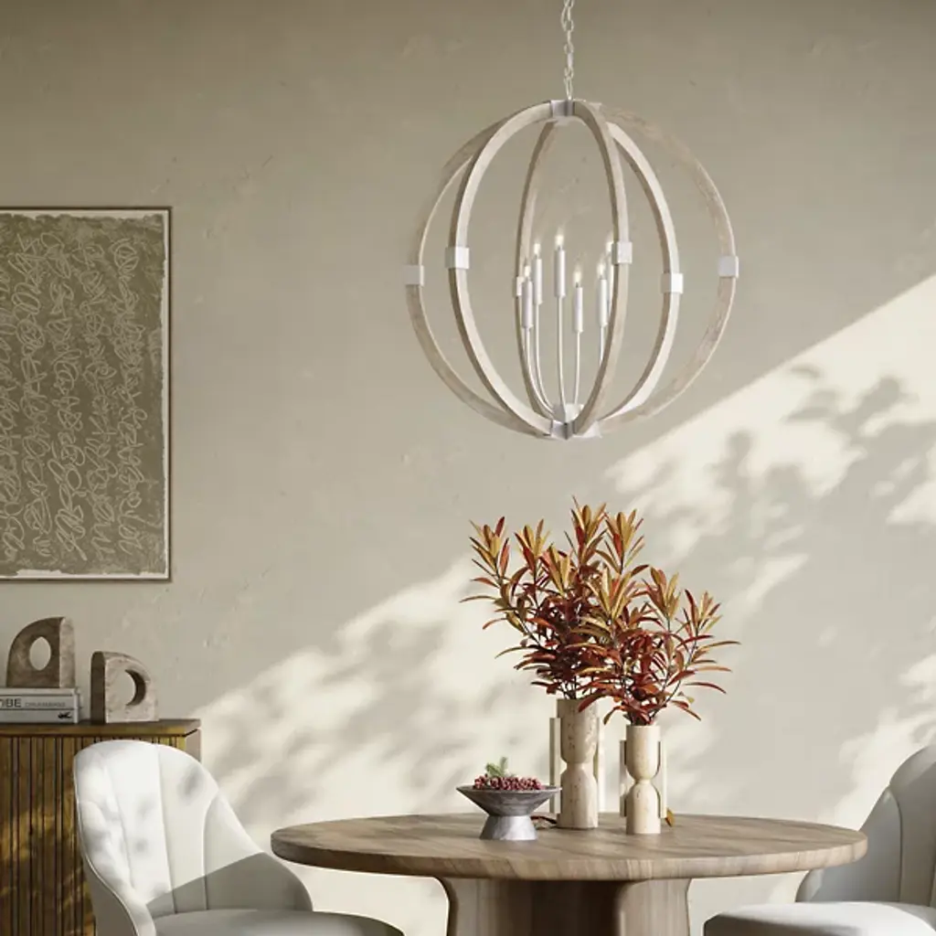 Enhance inside ceilings with the open, intricate appeal of the Bastian Orb Chandelier from Currey & Company. This appealing orb frame of wood with metal joints is suspended from a circular canopy via a chain, surrounding a slender, curving candelabra that emerges from the lower inner surface of the frame, blazing out with a warm, wide-reaching brilliance. The arcing ribs add a shadowy note of accompaniment to the otherwise unrestricted light, creating a refined and enduring presence.