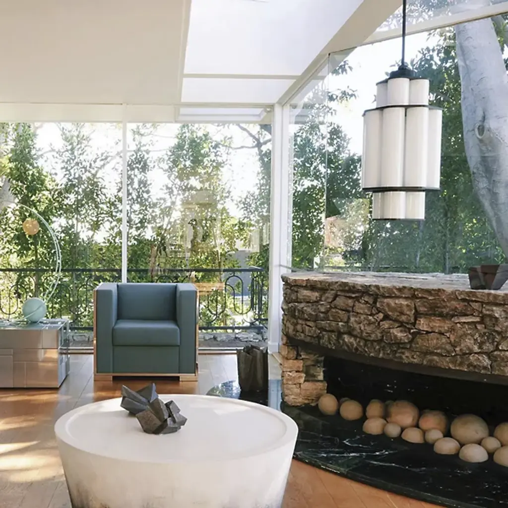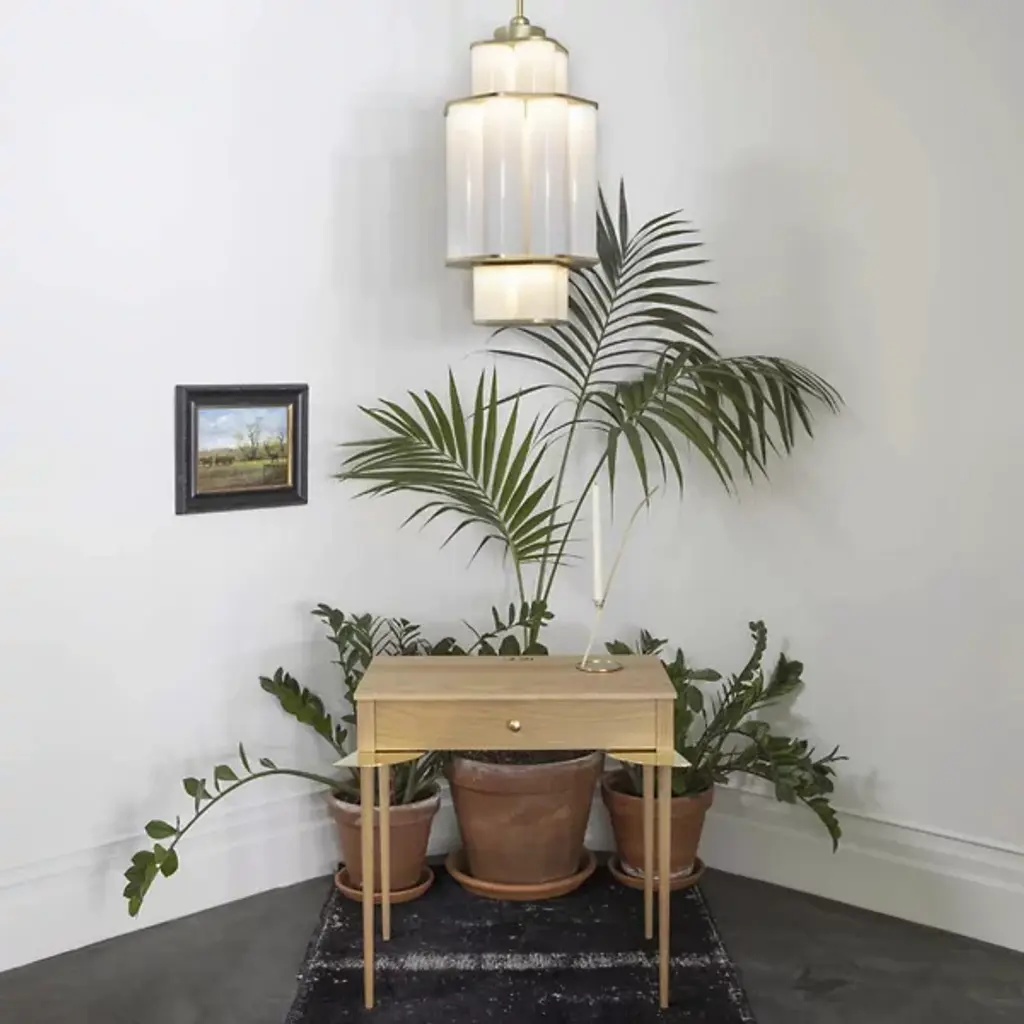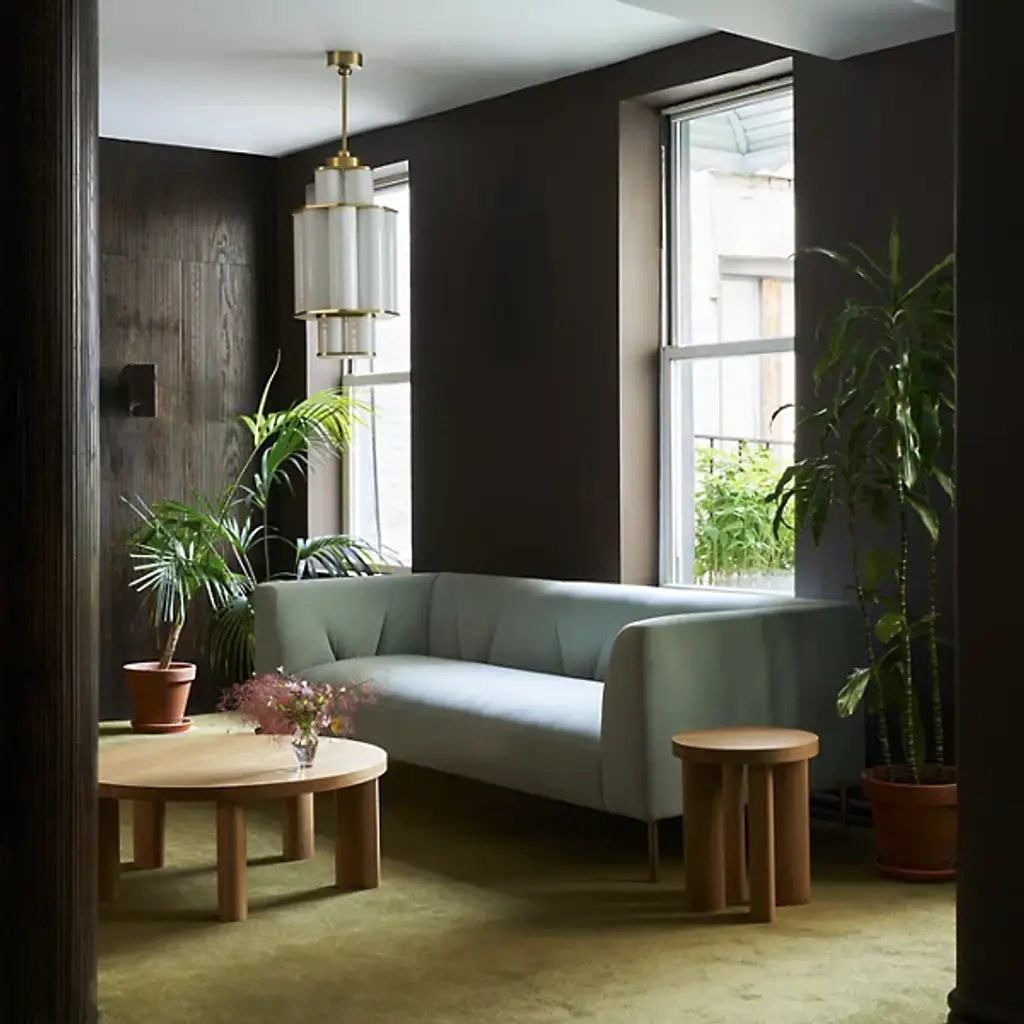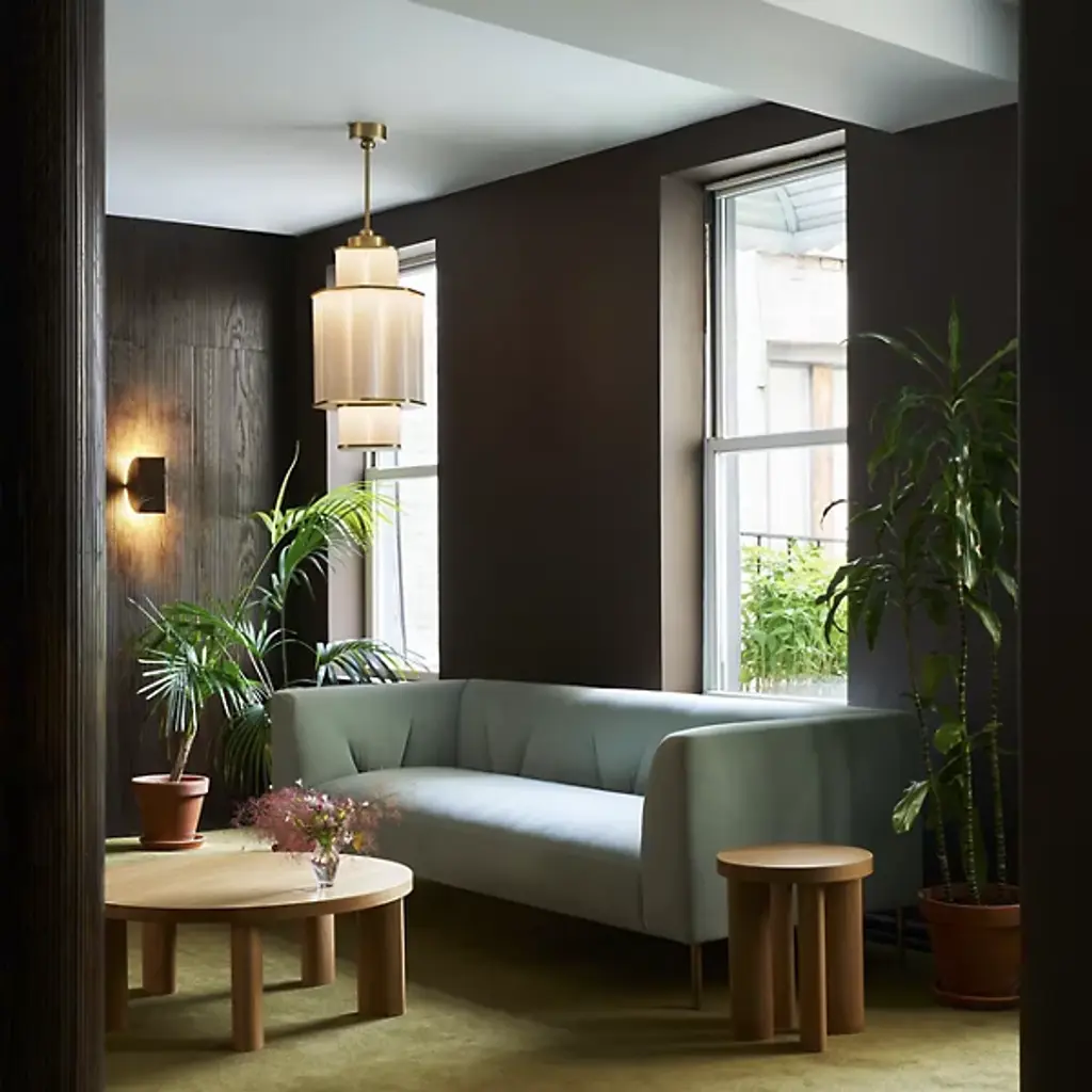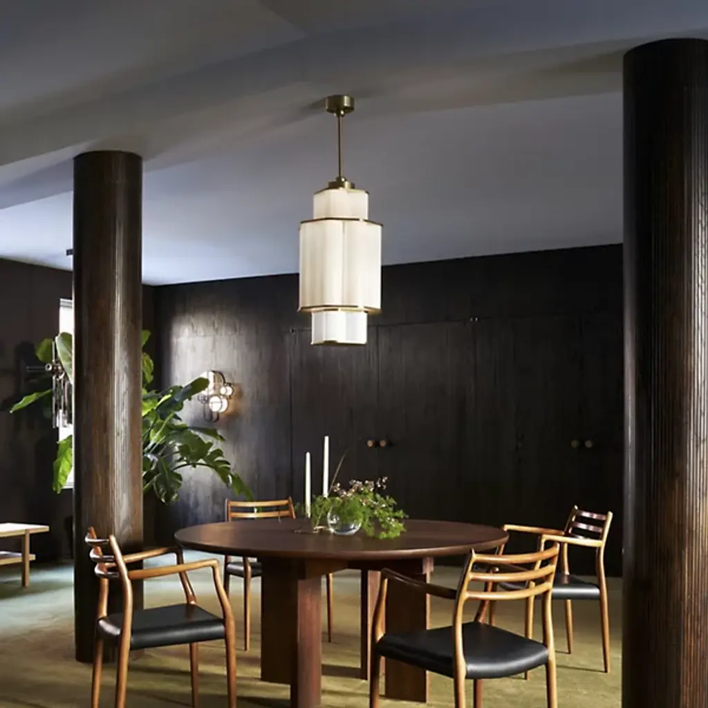 The Bauer LED Chandelier from Roll & Hill adds visual complexity to the space with artful clusters of dark to light tones. Jason Miller brings to life functional objects with beauty and wit to them. This piece evokes the tiered composition of a traditional chandelier in silhouette. It catches the eye overhead with a slice of contrasting metal. Handblown tubular glass shades nestle inside these slices, showcasing seductive curves. Bulbs at the top and bottom create a gradient of light on the shades that impresses. This light brings a rich, inviting atmosphere.