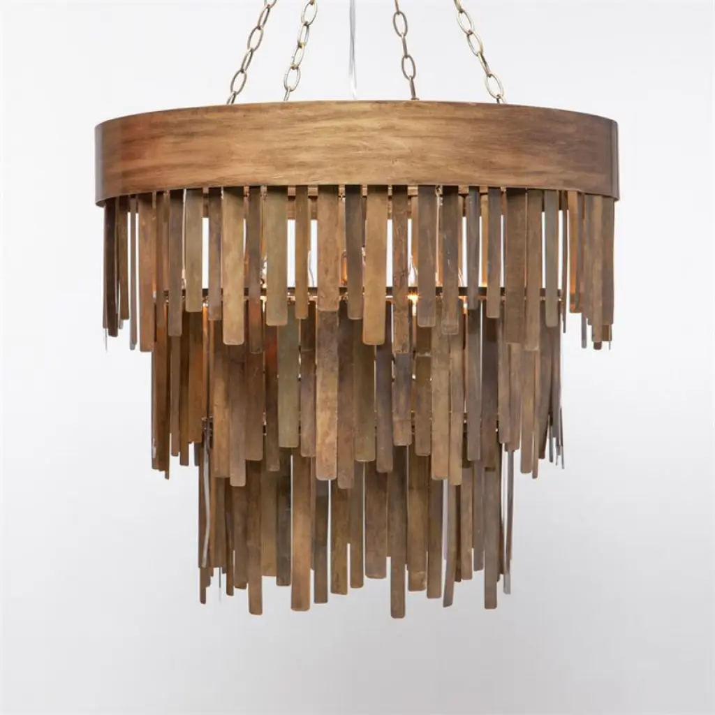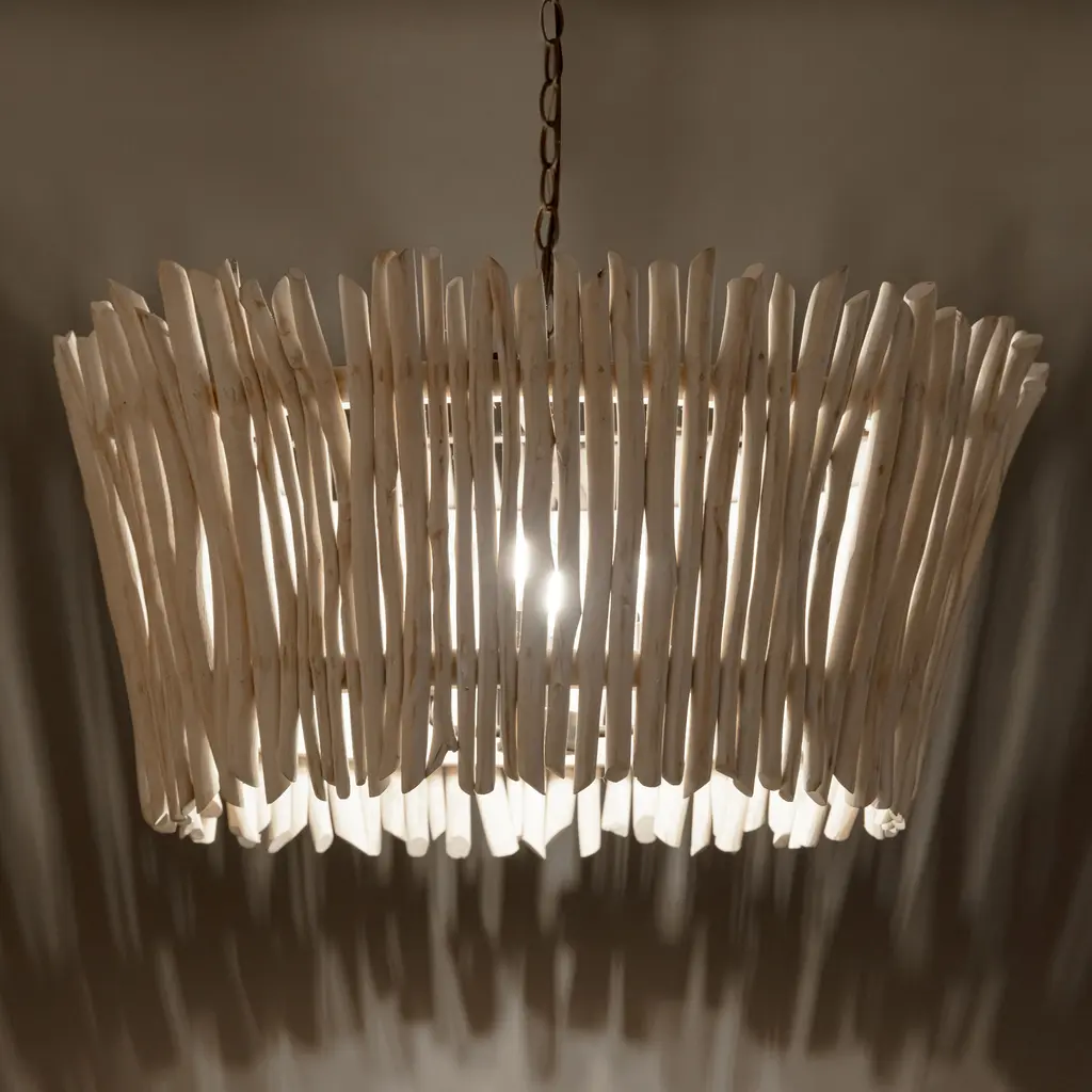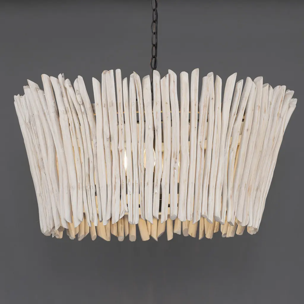Thin branches of eucalyptus are linked together into a tapered bouquet shade. Individually shaped by hand, the impeccable craftsmanship includes a hand-applied Weathered White finish on the wood that complements the multi-tonal Dark Bronze finish on the metal.