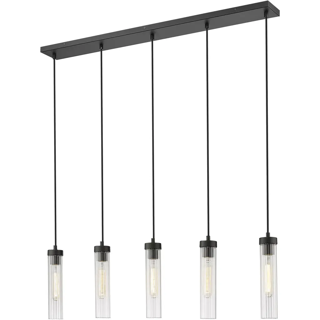 Beau 5 Light 42 Inch Matte Black Linear Chandelier Ceiling Light
