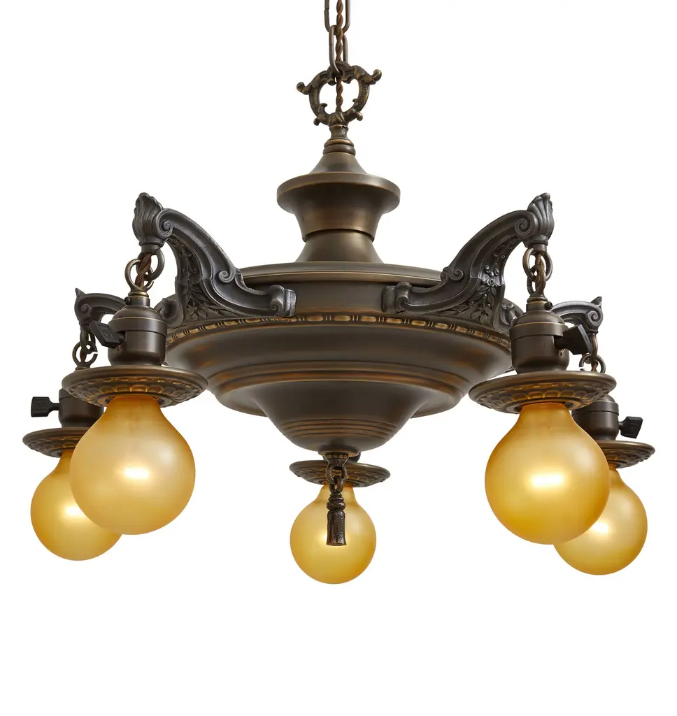 Beautifully Highlighted Vintage Classical Revival 5 Light Pan Chandelier