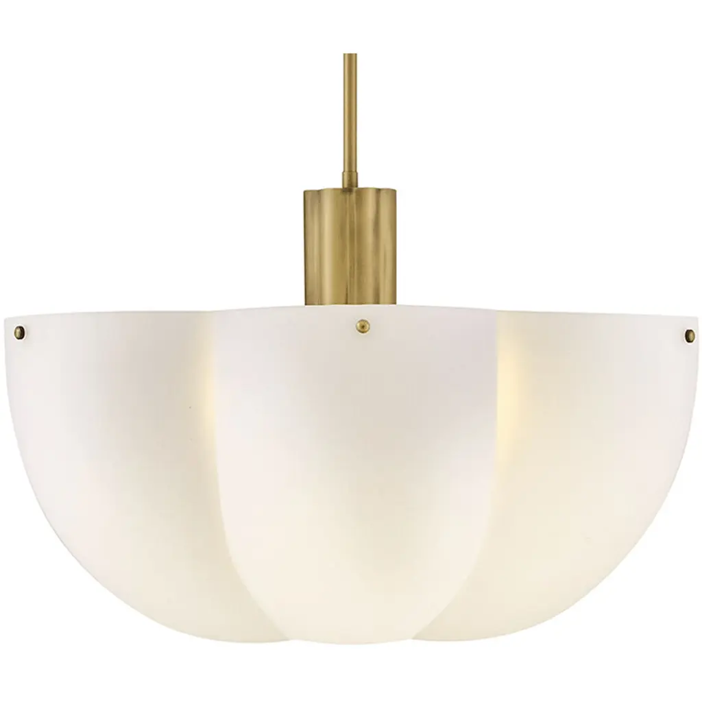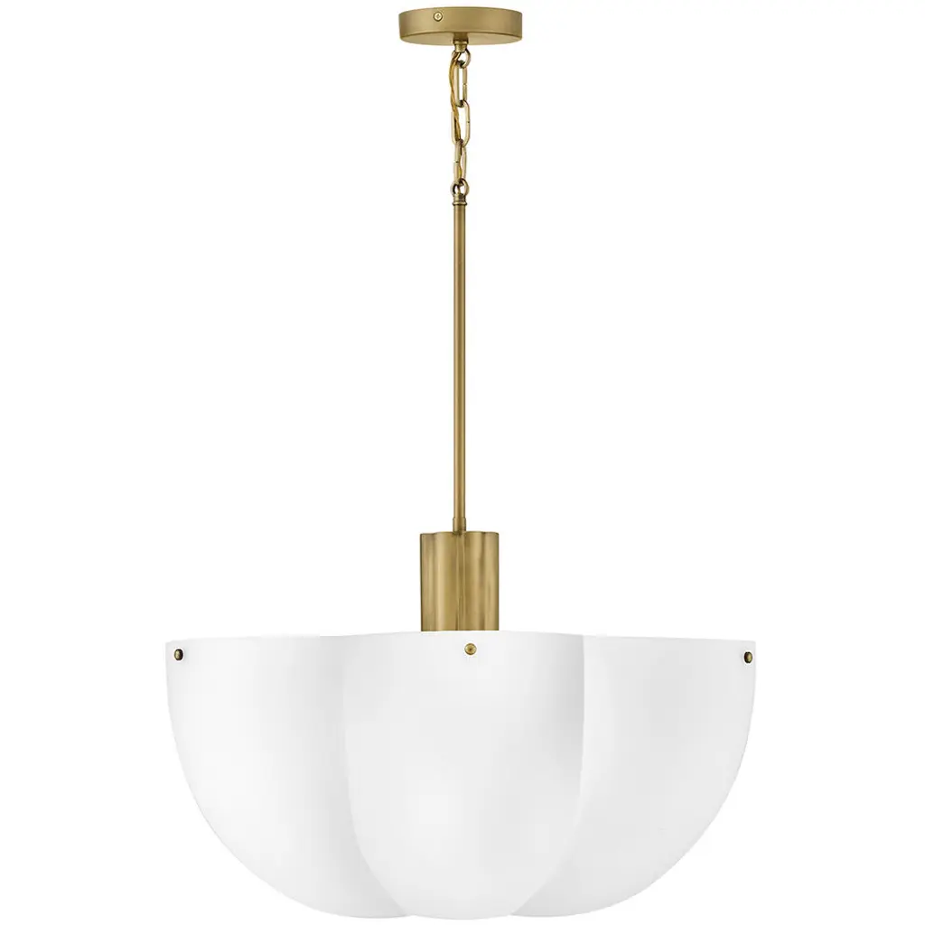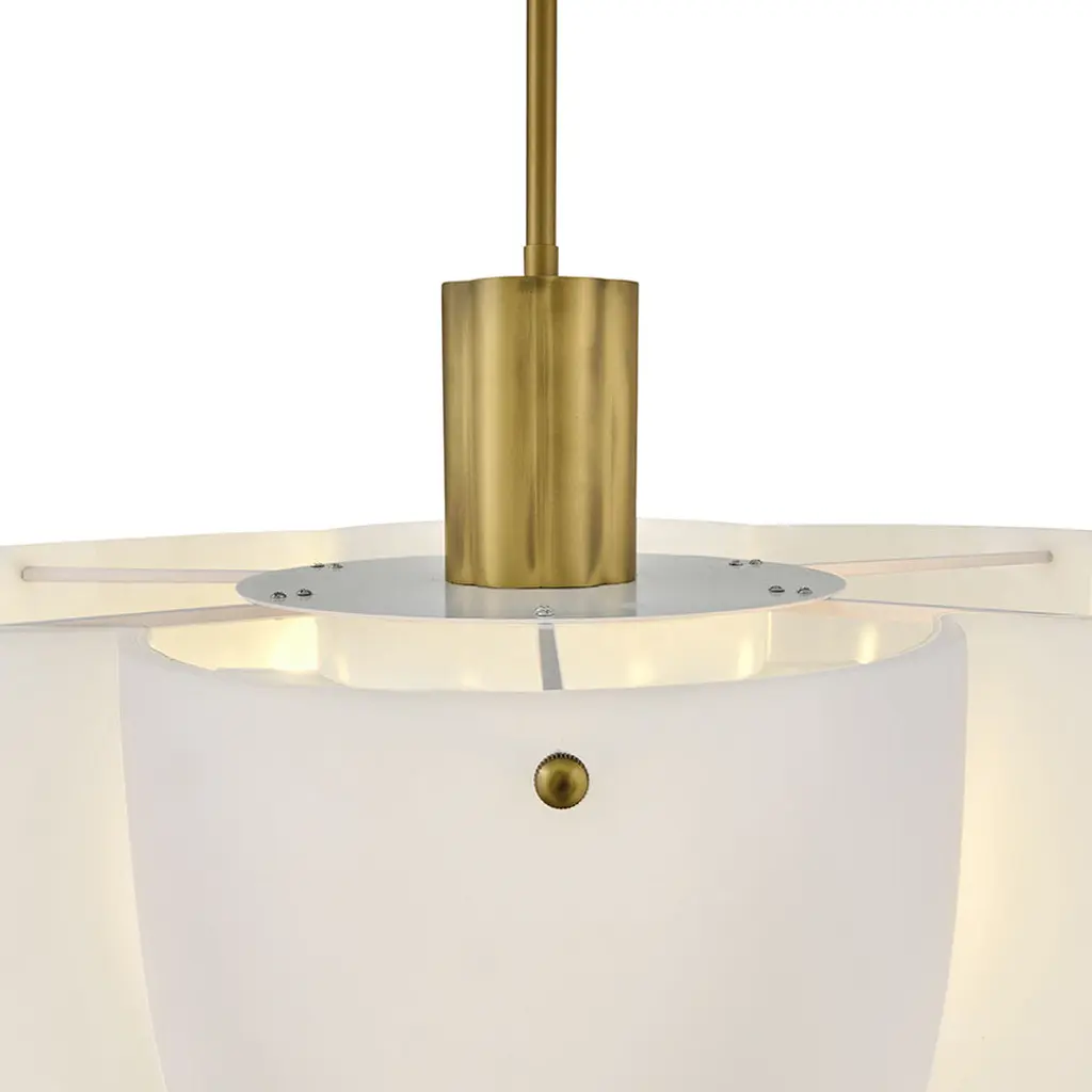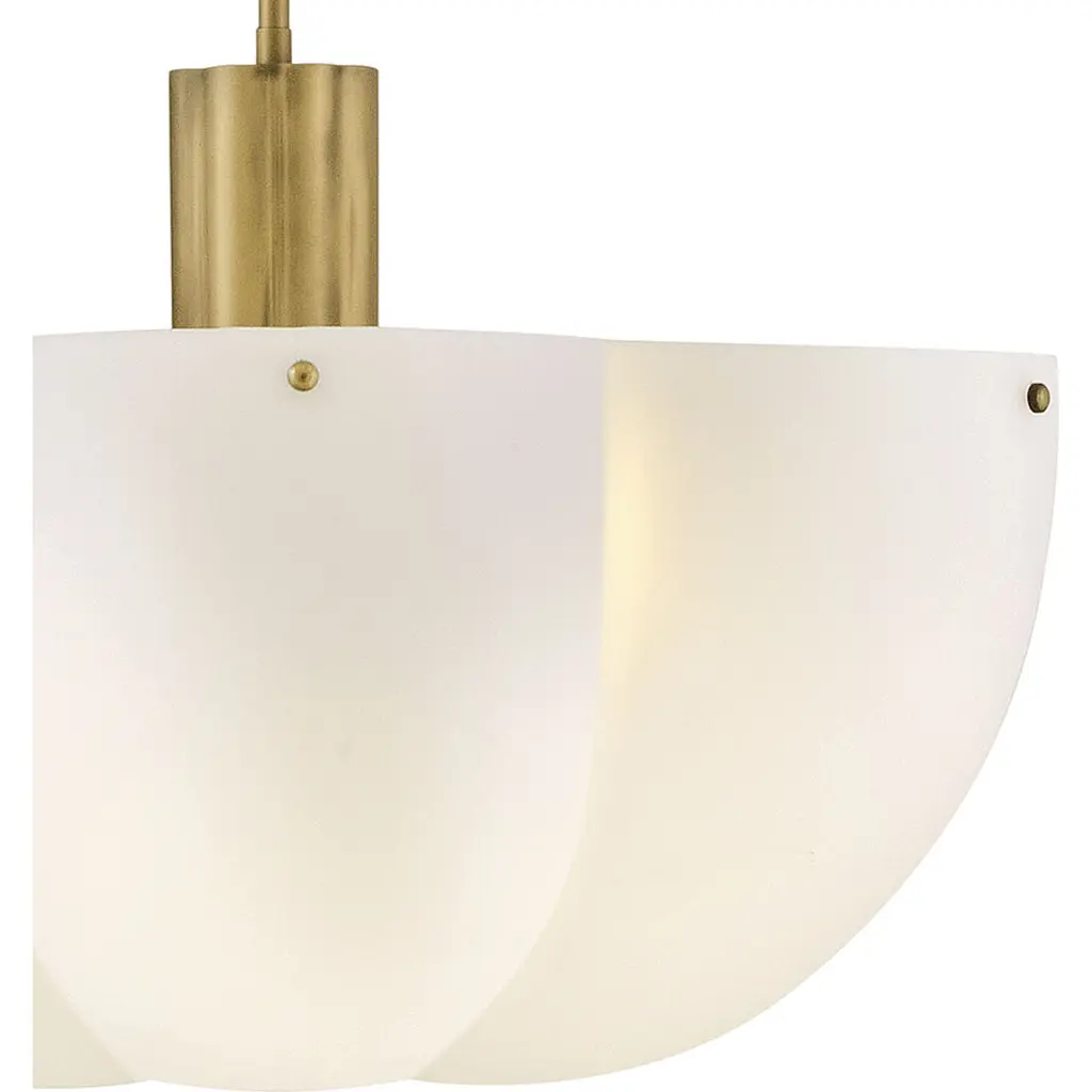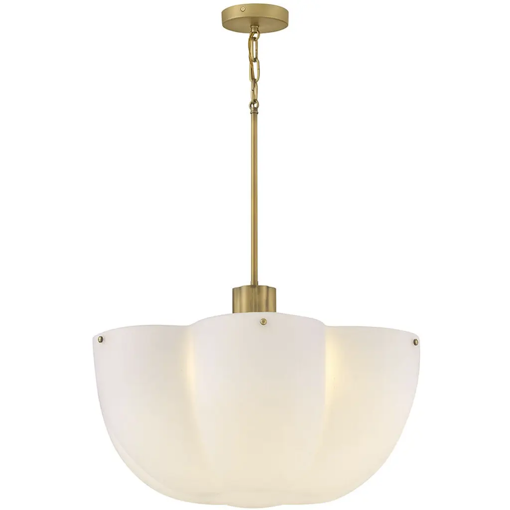 Shapely and beautiful, Beccas cloverlike shade is hand-blown from etched opal glass and diffuses even bright light throughout your living space. A classic Heritage Brass finish accentuates ribbed detailing.
