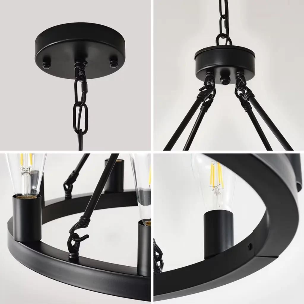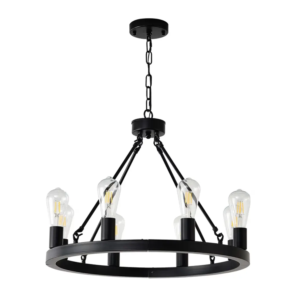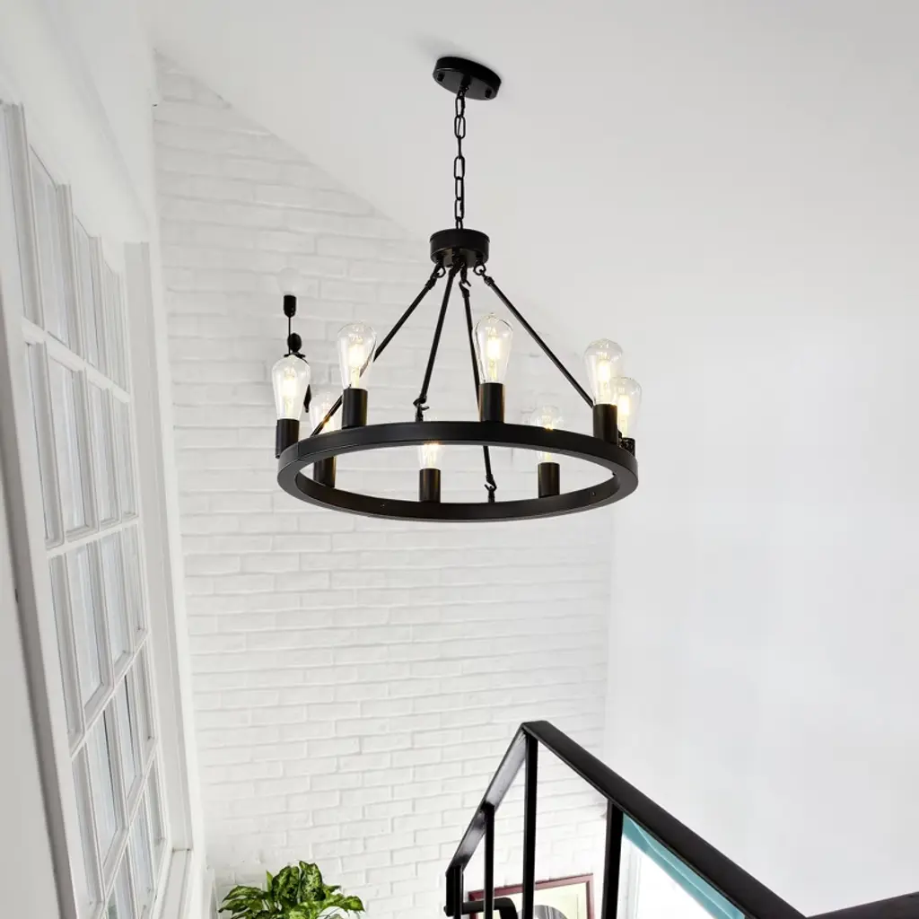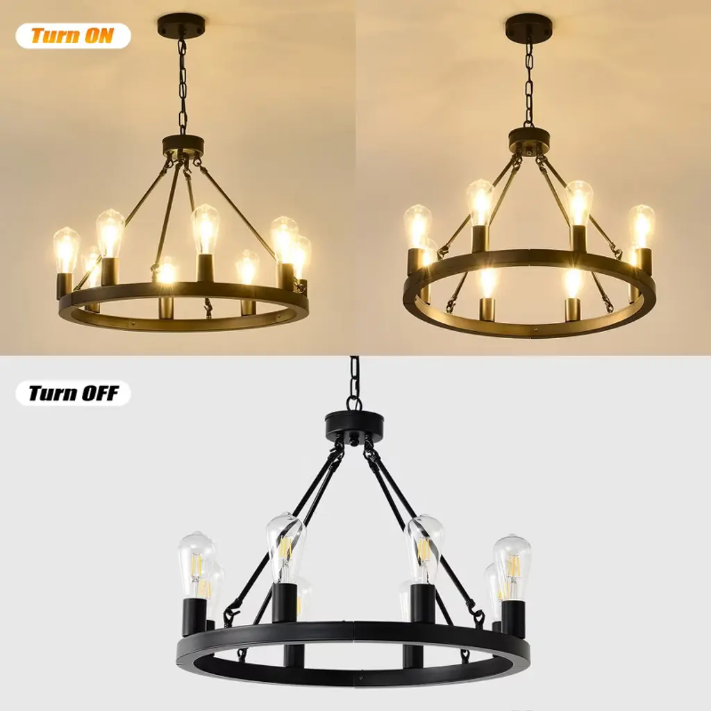 Illuminate your living spaces with the stunning Wagon Wheel Chandelier, designed to seamlessly blend modern sophistication with rustic charm. Featuring a durable metal frame finished in matte black, this eye-catching lighting fixture elevates any room's aesthetic. Ideal for dining rooms, kitchens, and entryways, it provides a warm glow that transforms ordinary moments into extraordinary experiences. With easy installation and adjustable height options, you can customize the chandelier to suit your space perfectly. Bring a touch of elegance and brilliance to your home with this exquisite chandelier that promises to become a focal point in your décor.