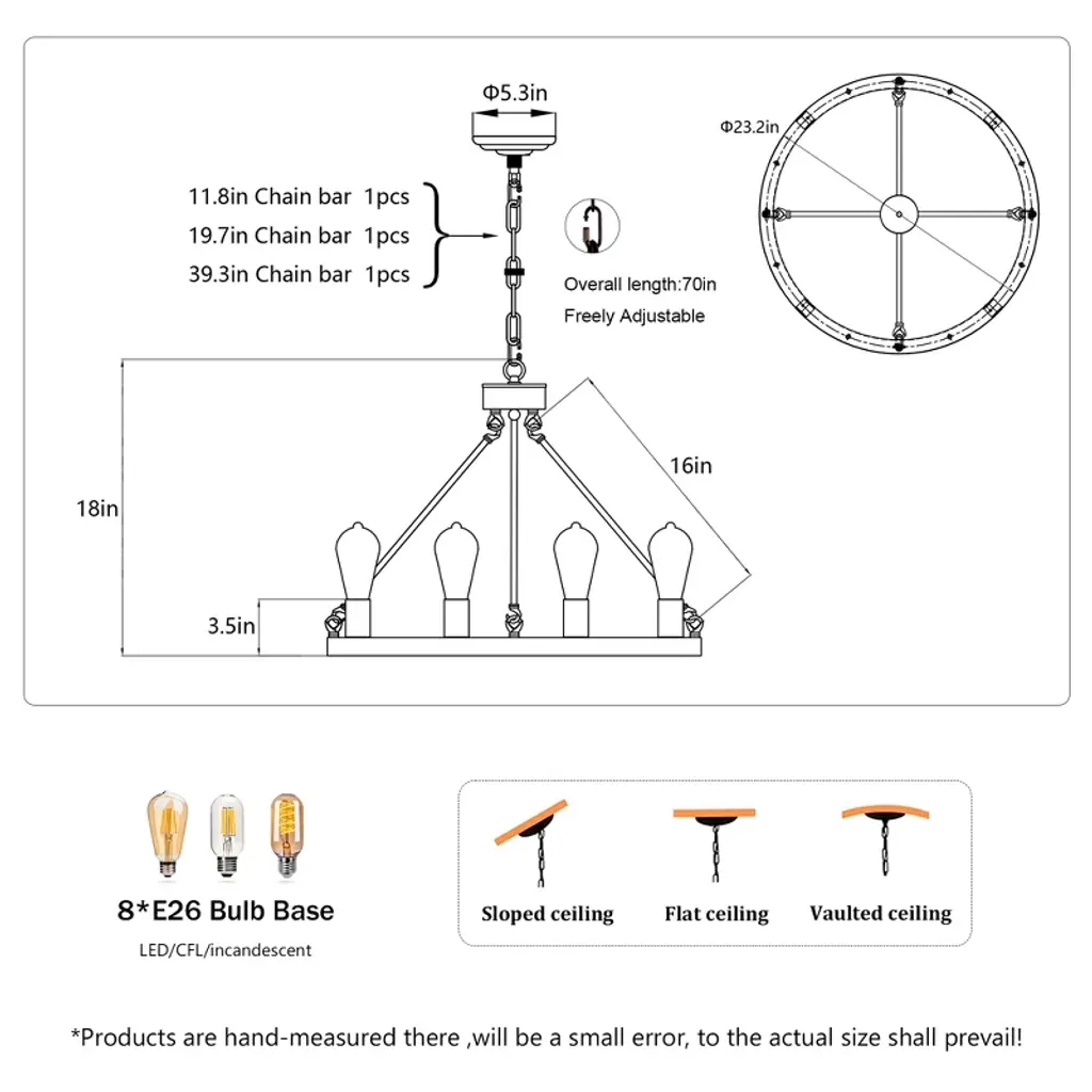 Bella Depot 23.2" 8-light Wagon Wheel Chandelier