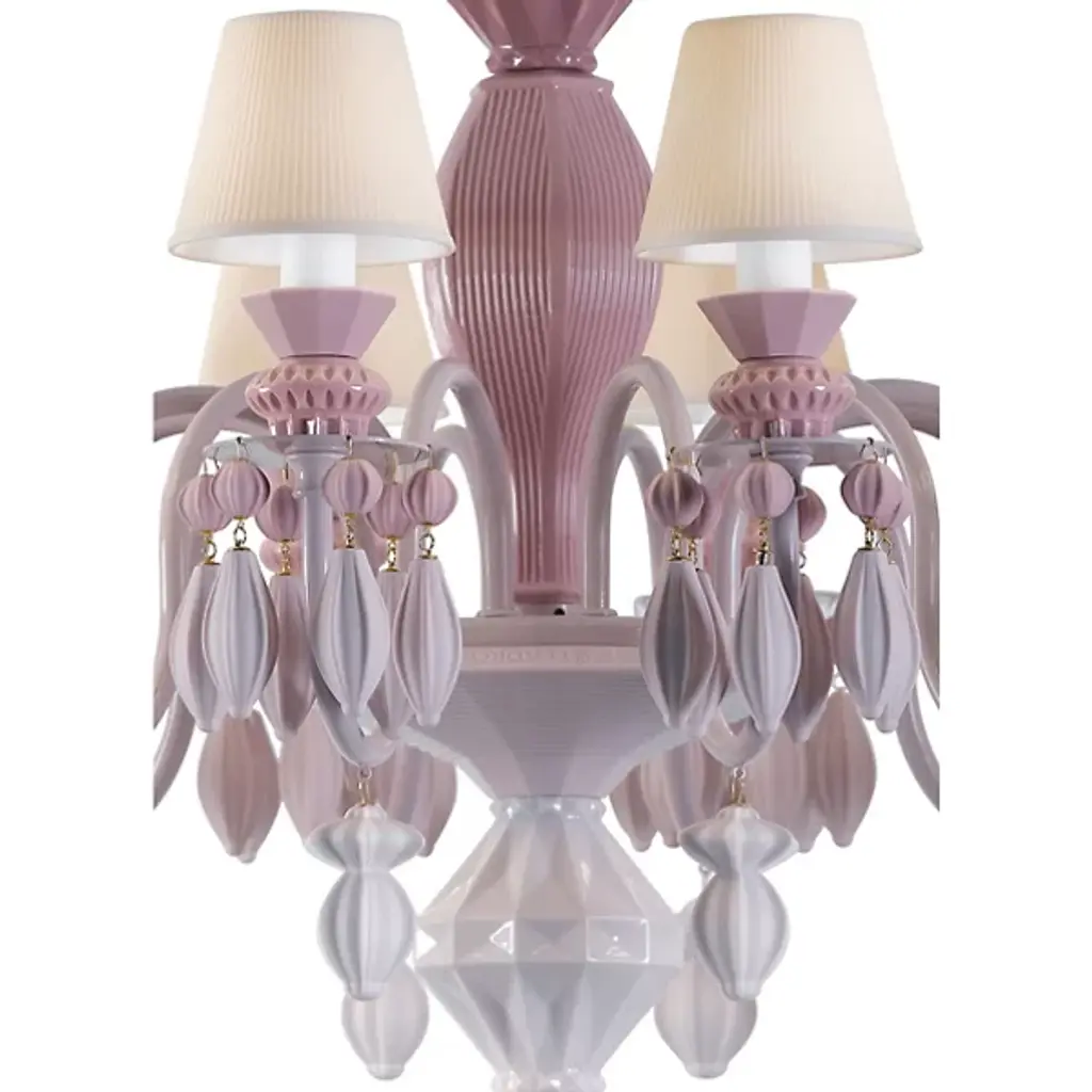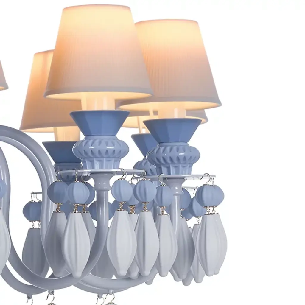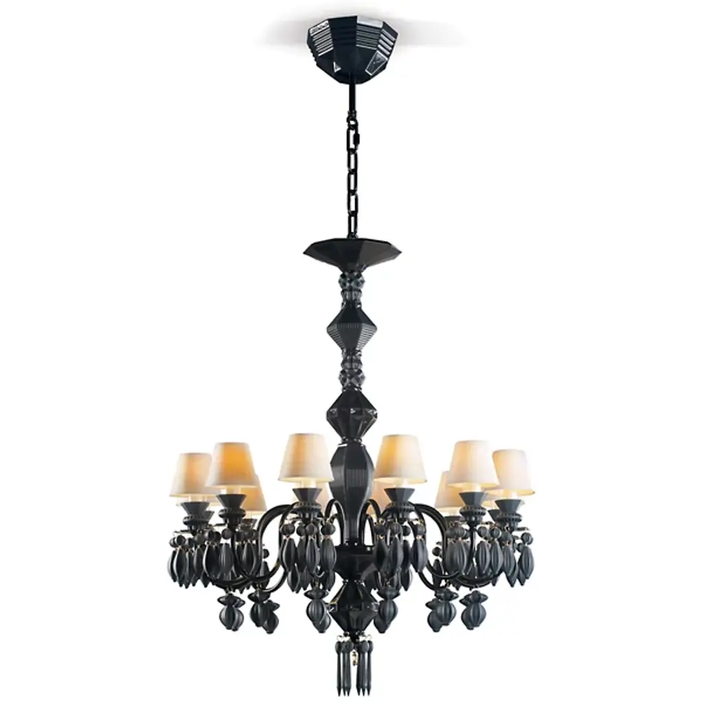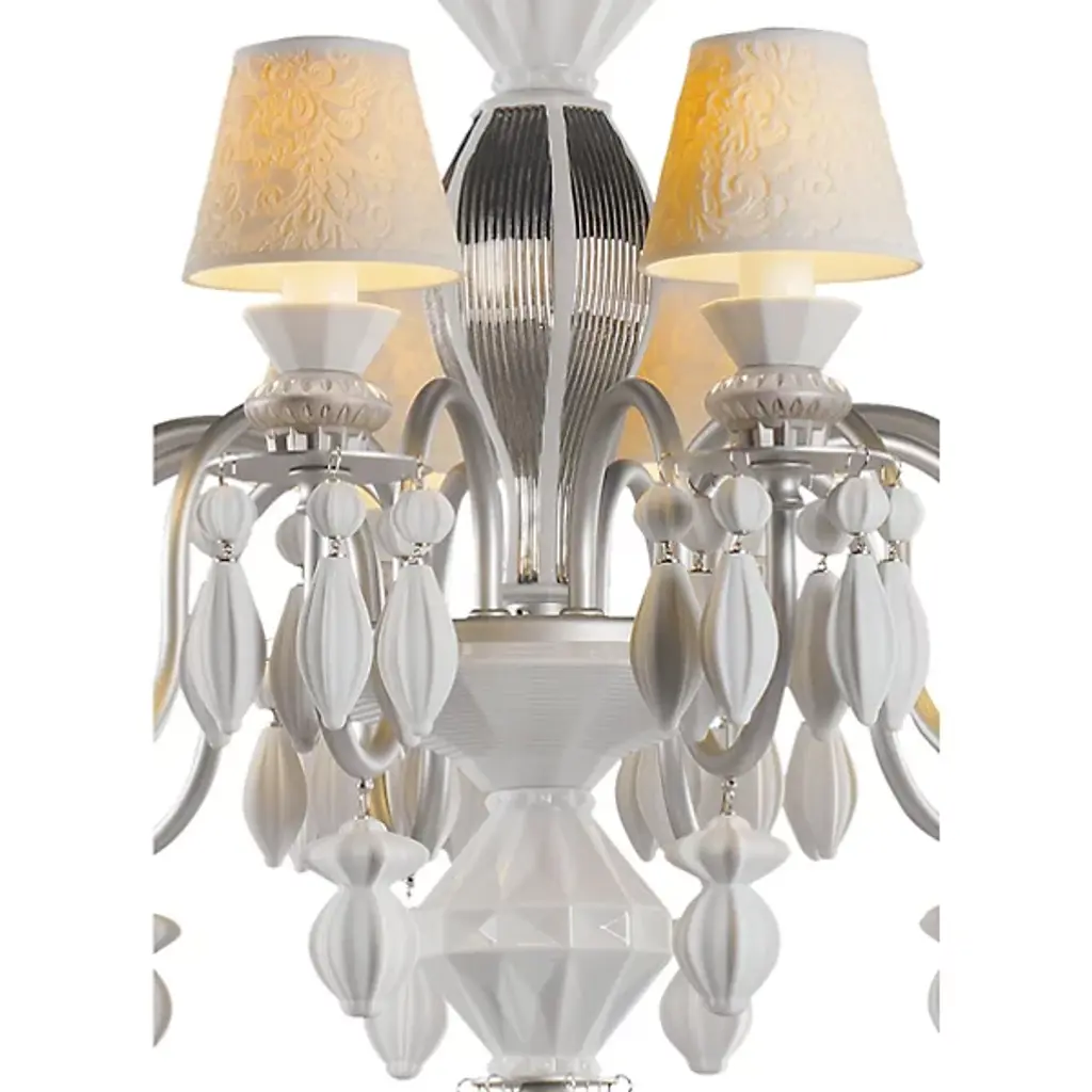 Named for the Beauty of the Night plant that inspired it, the Belle de Nuit Single Tier Chandelier from Lladro glows in the night, illuminating a range of spaces in your modern home. The smooth aluminum body is accented by a set of twelve porcelain shades that come to life from the bulbs within. The complex and elegant design features several hanging pieces and swooping arms that stand out in the space.