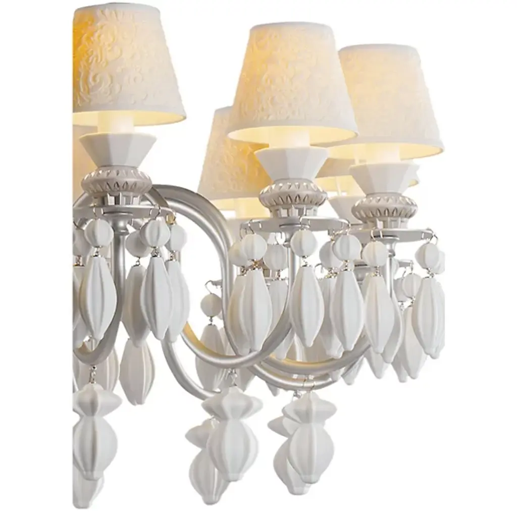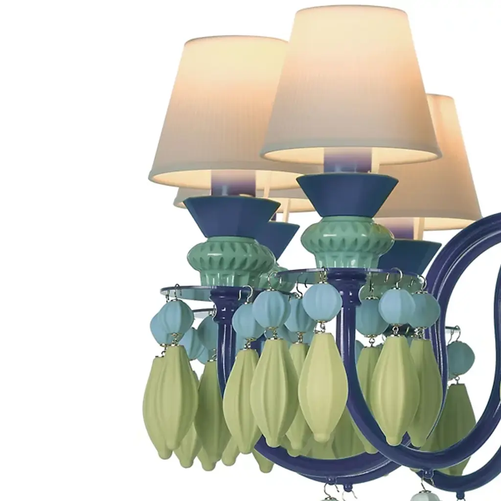 Named for the Beauty of the Night plant that inspired it, the Belle de Nuit Single Tier Chandelier from Lladro glows in the night, illuminating a range of spaces in your modern home. The smooth aluminum body is accented by a set of twelve porcelain shades that come to life from the bulbs within. The complex and elegant design features several hanging pieces and swooping arms that stand out in the space.