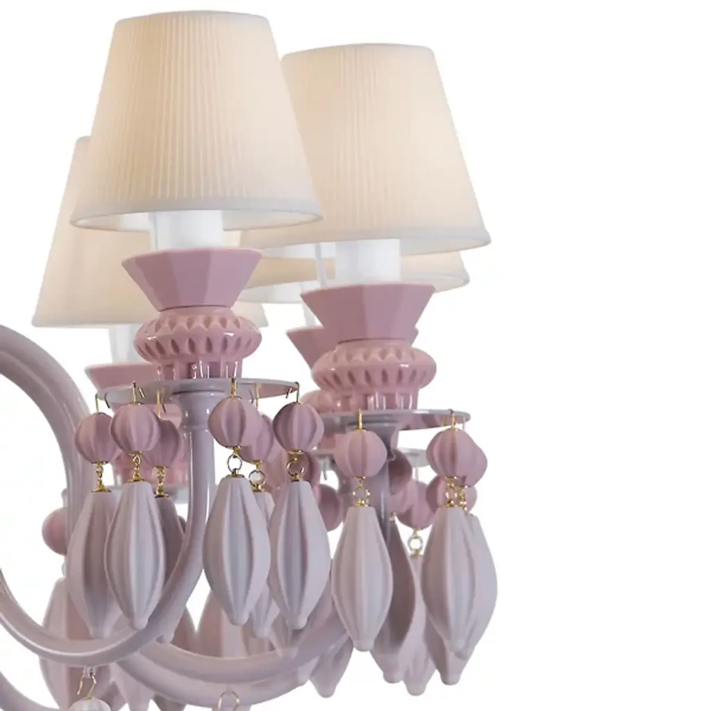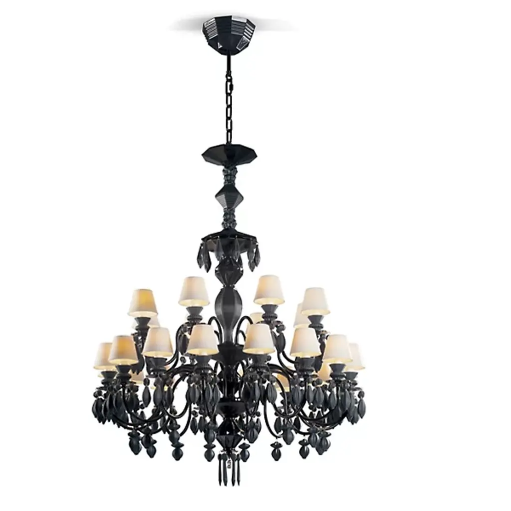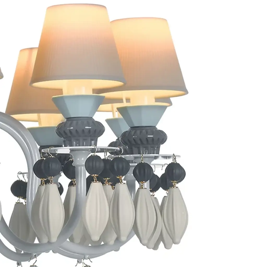 Named for the Beauty of the Night plant that inspired it, the Belle de Nuit Single Tier Chandelier from Lladro glows in the night, illuminating a range of spaces in your modern home. The smooth aluminum body is accented by a set of twelve porcelain shades that come to life from the bulbs within. The complex and elegant design features several hanging pieces and swooping arms that stand out in the space.