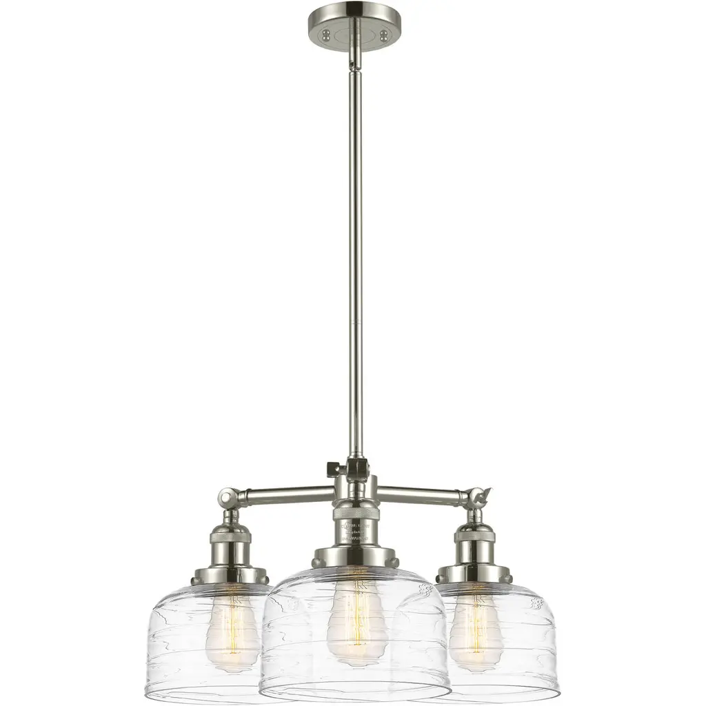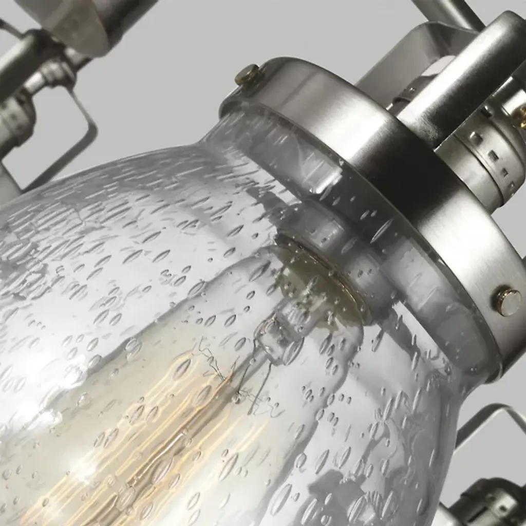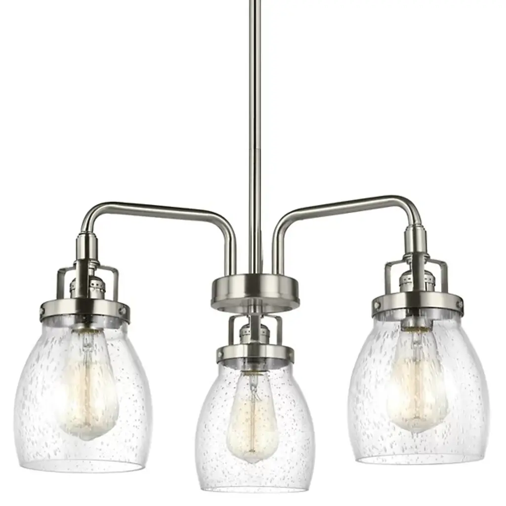 Brimming with personality, the Belton Chandelier by Generation Lighting, formerly known as Sea Gull Lighting, brings an industrial edge to your living space. Its eye-catching, pipe-inspired body supports a series of Seeded glass shades via decorative holders. Each shade diffuses light from a vintage tungsten Edison bulb, providing a warm, shimmering ambiance to the surrounding space. A perfect rustic statement piece either over an entryway, living room, or kitchen table.