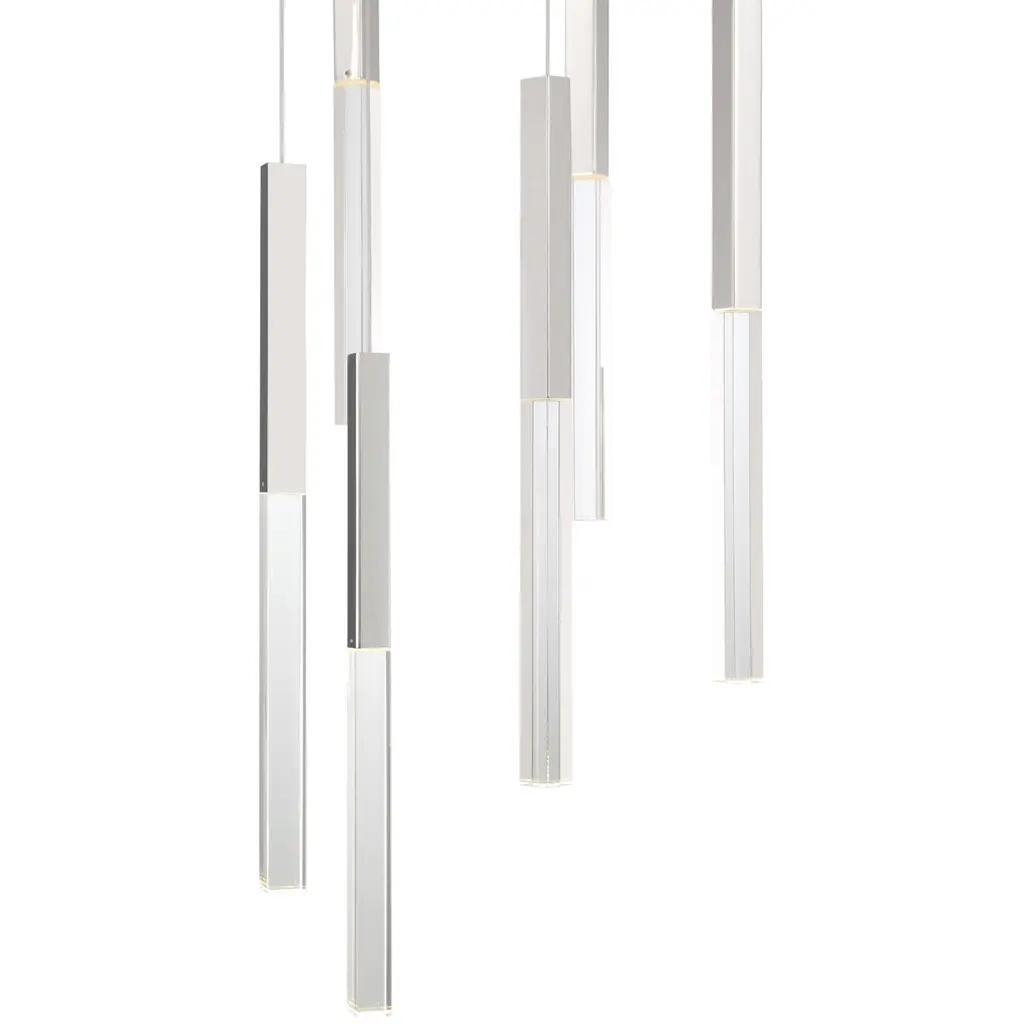 Its crystal rectangular prism and sharp beveled edges create brilliant illumination to the Benicio collection. Solid glass vertical spires cast vivid refractions across wall and ceiling surfaces. The thin simple geometric shape lends itself to luxurious and contemporary environments while providing a dual LED light source.