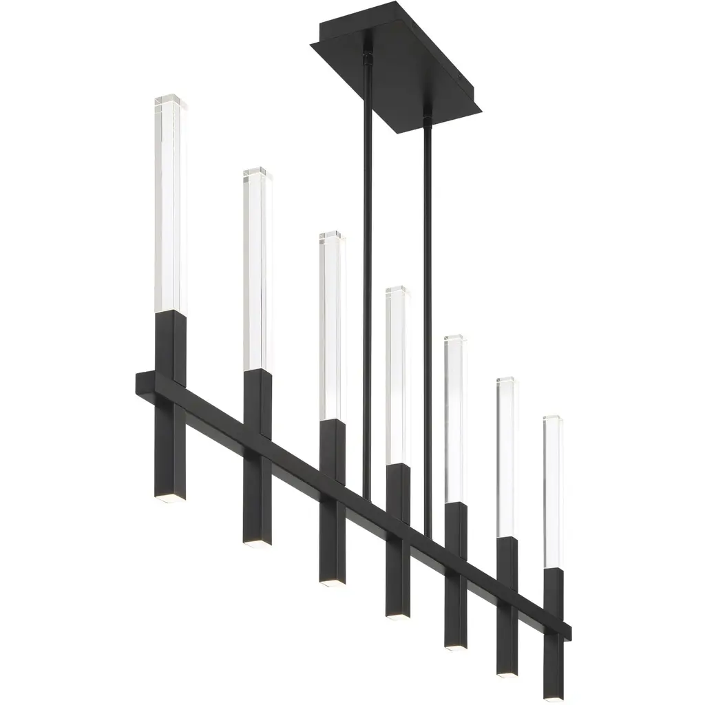 Its crystal rectangular prism and sharp beveled edges create brilliant illumination to the Benicio collection. Solid glass vertical spires cast vivid refractions across wall and ceiling surfaces. The thin simple geometric shape lends itself to luxurious and contemporary environments while providing a dual LED light source.