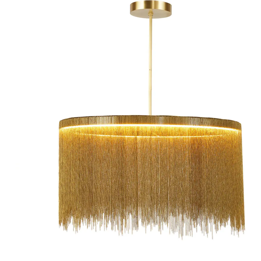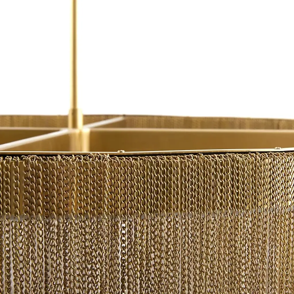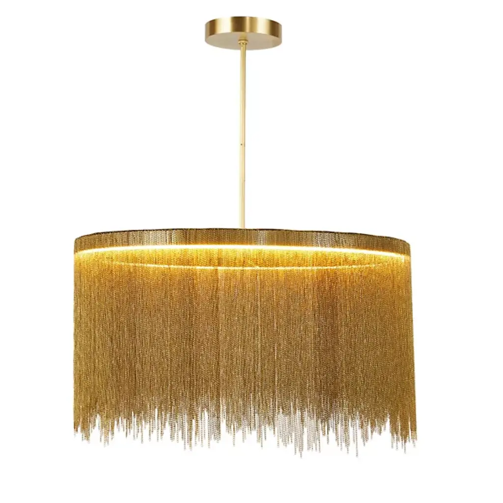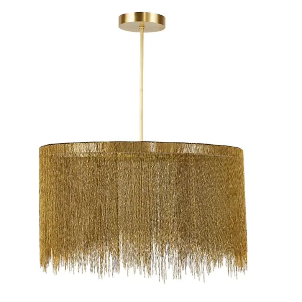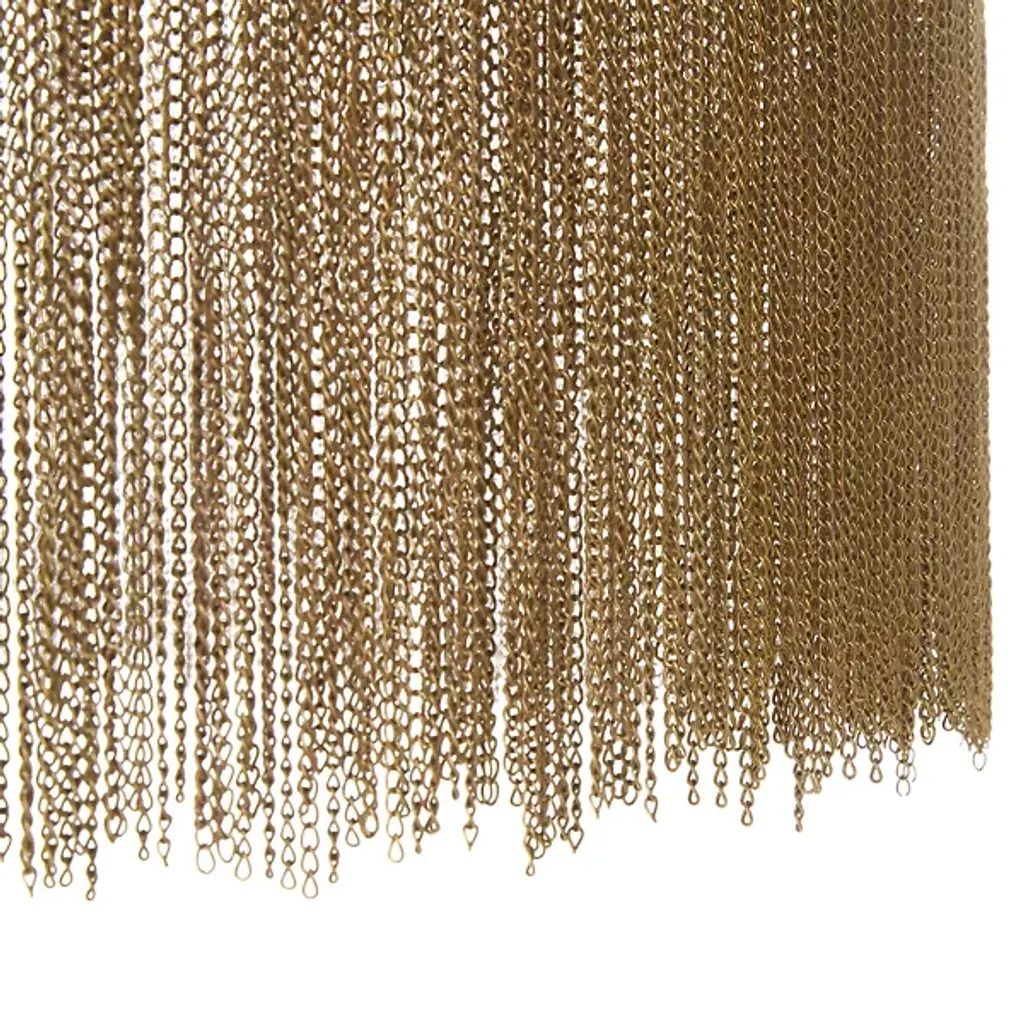 The Bennet LED Chandelier from Arteriors offers the captivating allure of contemporary style. A cascade of antique brass iron chains envelops an integrated LED ring, creating a mesmerizing interplay of light and shadow. This luminaire, an embodiment of elegance, injects a dramatic touch into any space. While damp-rated, please note that extended exposure to covered outdoor conditions may influence the finish. Illuminate your surroundings with sophistication and style, making a bold statement with this exceptional lighting piece.