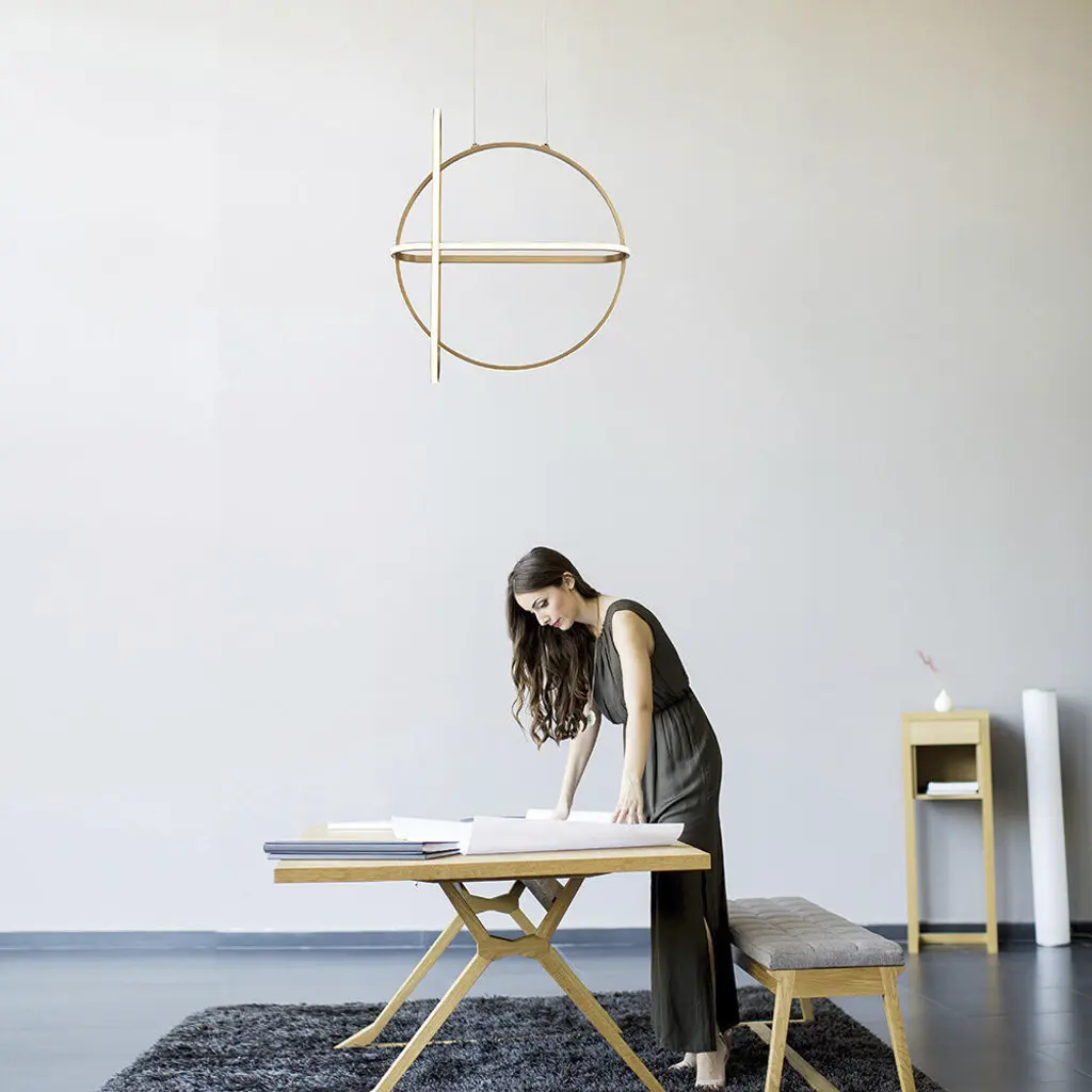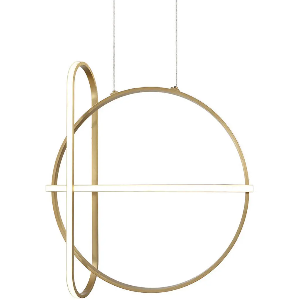 LED rings overlapping one another, highlight the basics of line, shape, and form. The open framework adds an airy quality emphasizing its refined design. Choose between an oblong or rounded style to create the perfect ambiance.