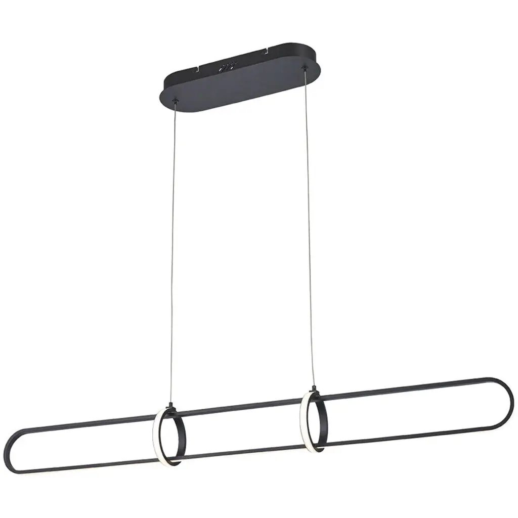 LED rings overlapping one another, highlight the basics of line, shape, and form. The open framework adds an airy quality emphasizing its refined design. Choose between an oblong or rounded style to create the perfect ambiance.
