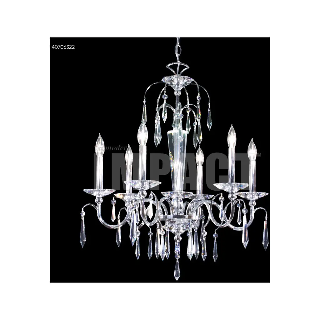 Chandelier in a silver leaf finish with matching candlesticks, featuring beveled crystal accents.