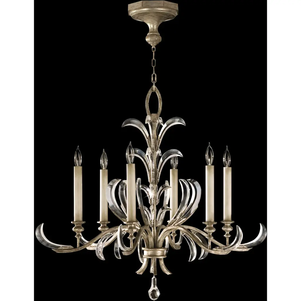 Beveled Arcs 6 Light 74 Inch Silver Chandelier Ceiling Light