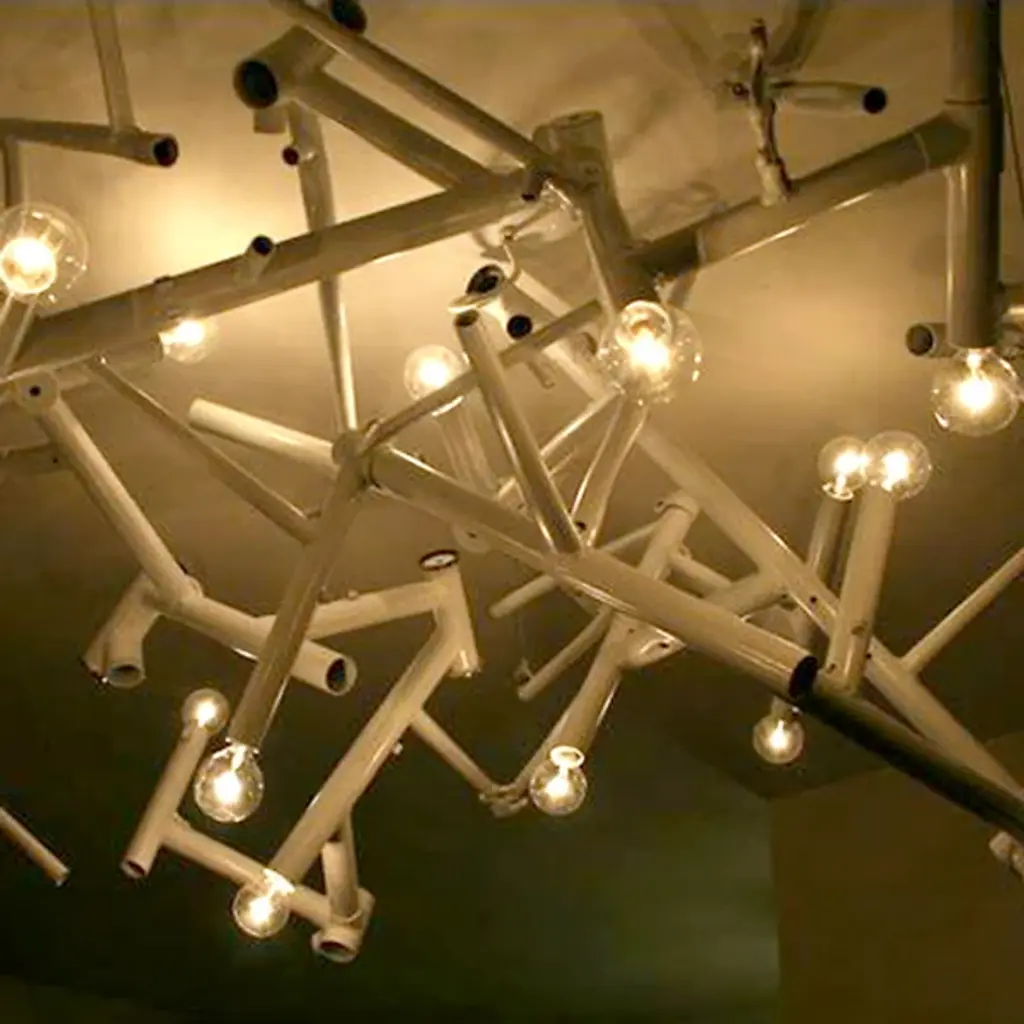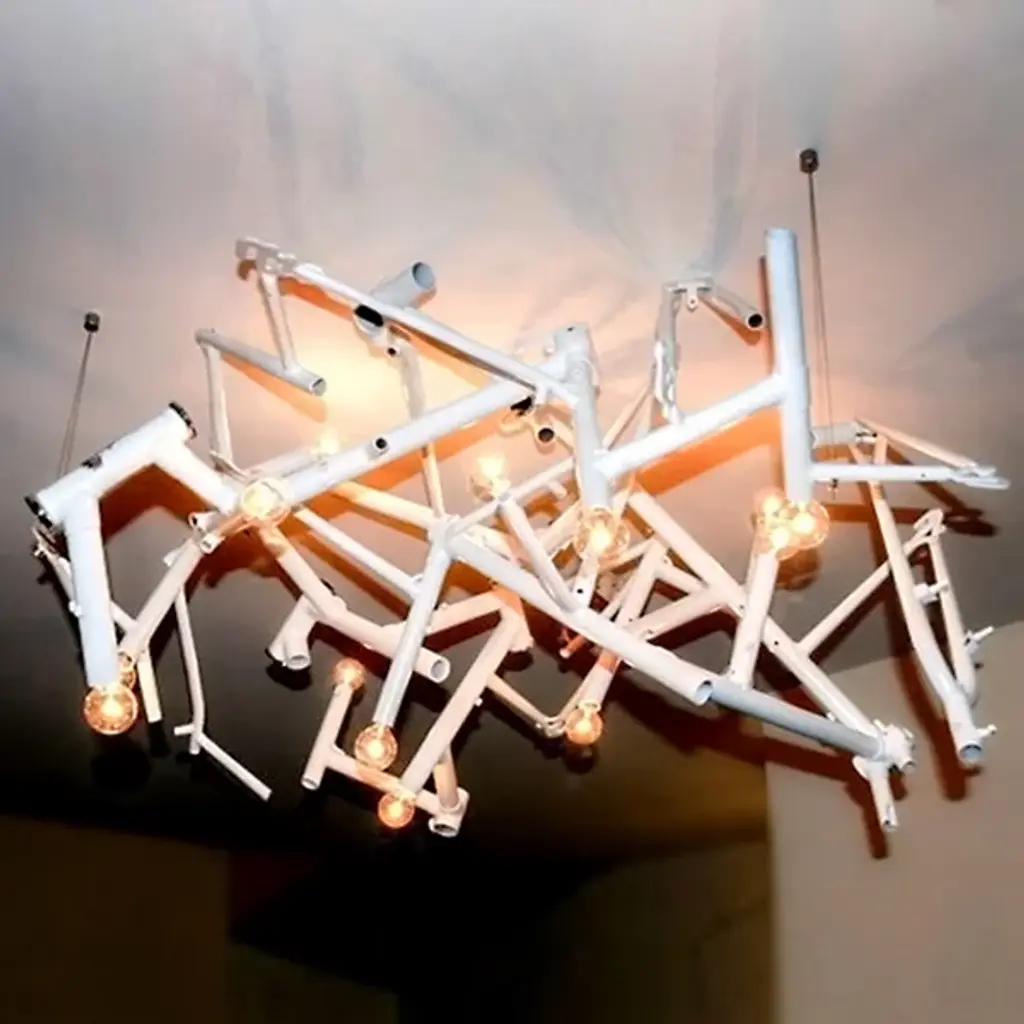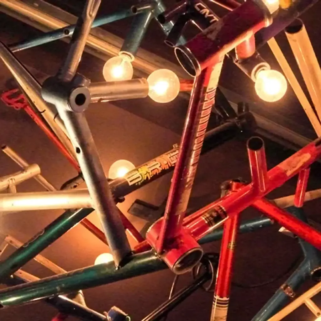 The Bicycle Round Chandelier from Ridgely Studio livens your living space with its chaotic, sculptural presence. A stand-out collaboration between Zac Ridgely and John Tong – each piece is made from interspersed, reclaimed bicycle frames, with open candelabra lamping set in its tubular framework. At the same time, near-invisible cables suspend its rounded form from above, giving the fixture an alluring, floating quality that is impossible to ignore. Each piece is truly one-of-a-kind, using different bicycle frames in varying orientations.