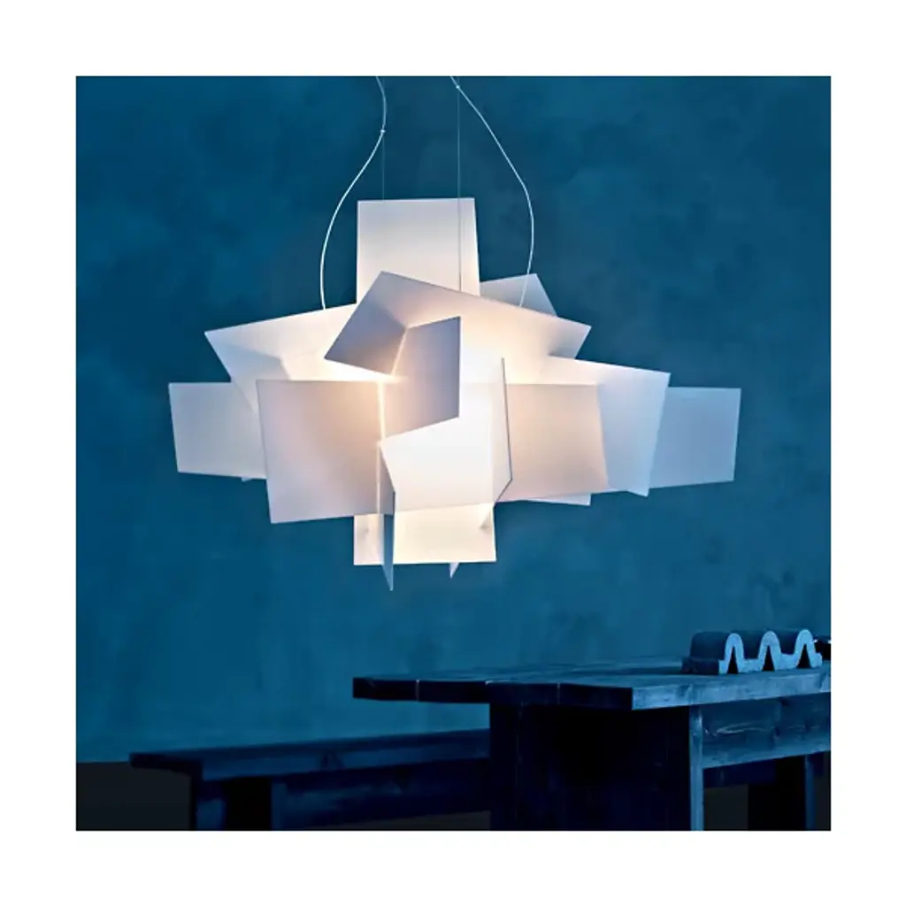 Alluring aura. The Big Bang XL LED Chandelier by Foscarini gives a space a magnificently modern spin. With its structural silhouette composed of intersecting panels, this is a ceiling fixture that makes a sensational style statement whether used as a centerpiece above a dining table or as a focal point in your living room. It provides direct downlight, while the various angles create playful shadows and add to the visual appeal of this piece.