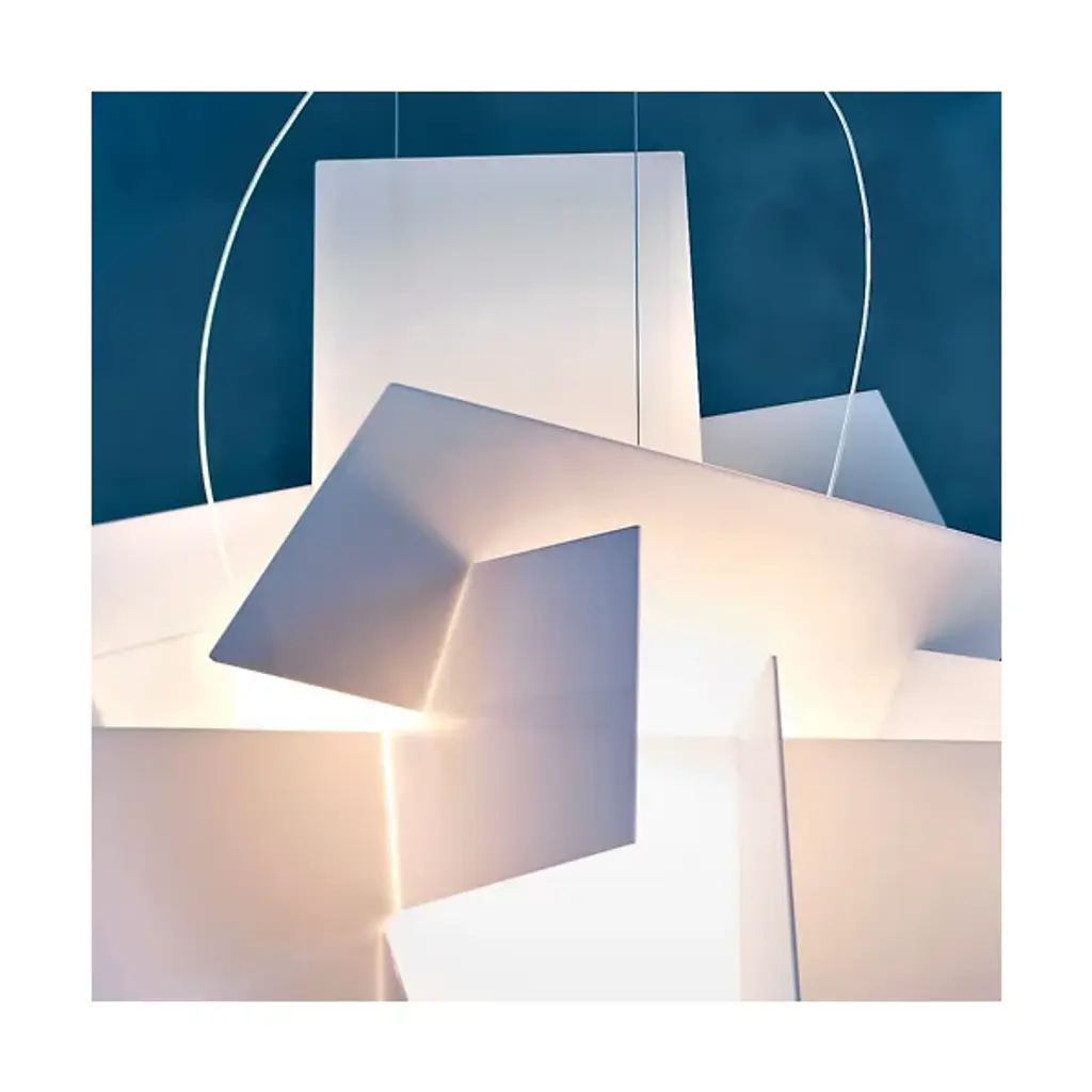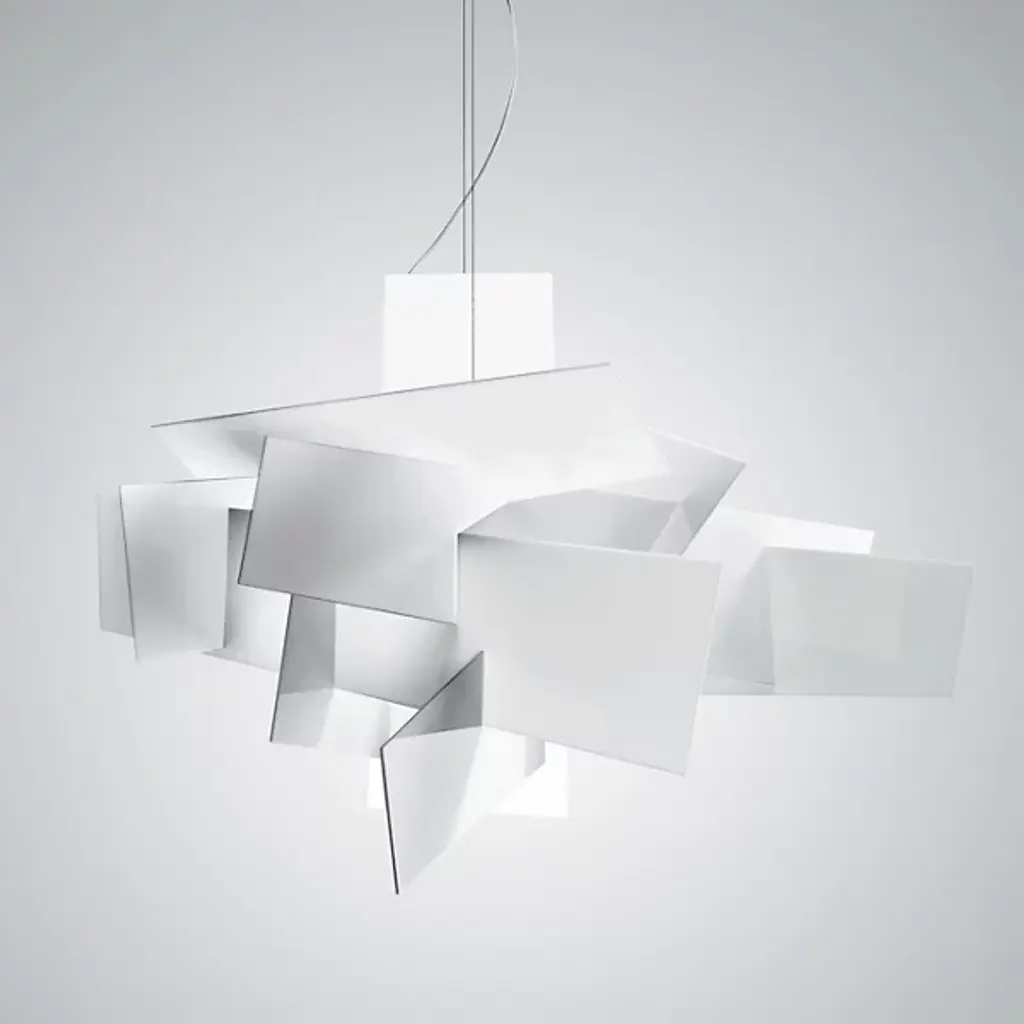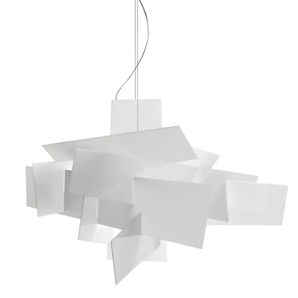 Alluring aura. The Big Bang XL LED Chandelier by Foscarini gives a space a magnificently modern spin. With its structural silhouette composed of intersecting panels, this is a ceiling fixture that makes a sensational style statement whether used as a centerpiece above a dining table or as a focal point in your living room. It provides direct downlight, while the various angles create playful shadows and add to the visual appeal of this piece.