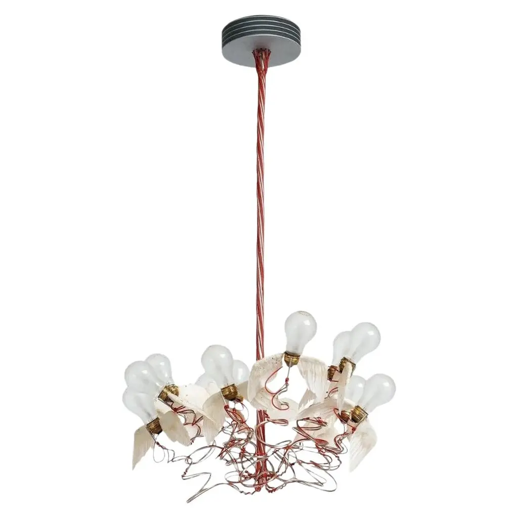 A whimsical addition to any home, the Birdie LED Chandelier from Ingo Maurer is a stunning reminder of the beauty of flight. Its twelve incandescent bulbs, feature impressive white goose feather wings that flutter about the elegant curling metal wire frame. A truly opulent piece that allows you to bring a touch of majestic flight to your living space. Highlights