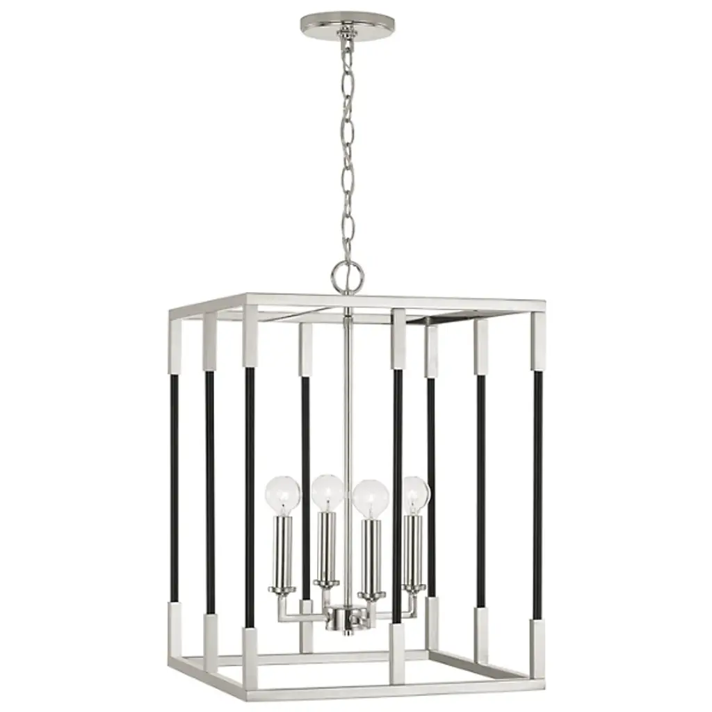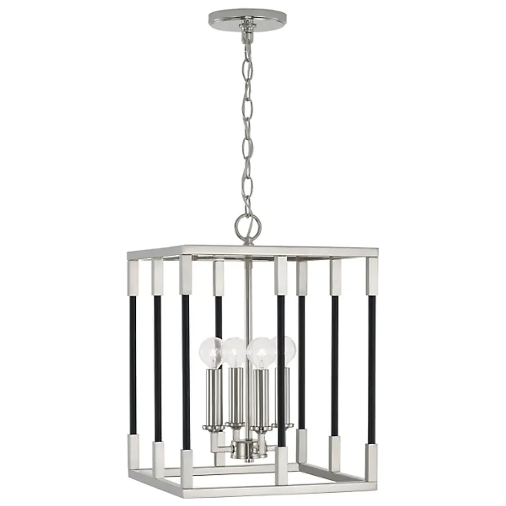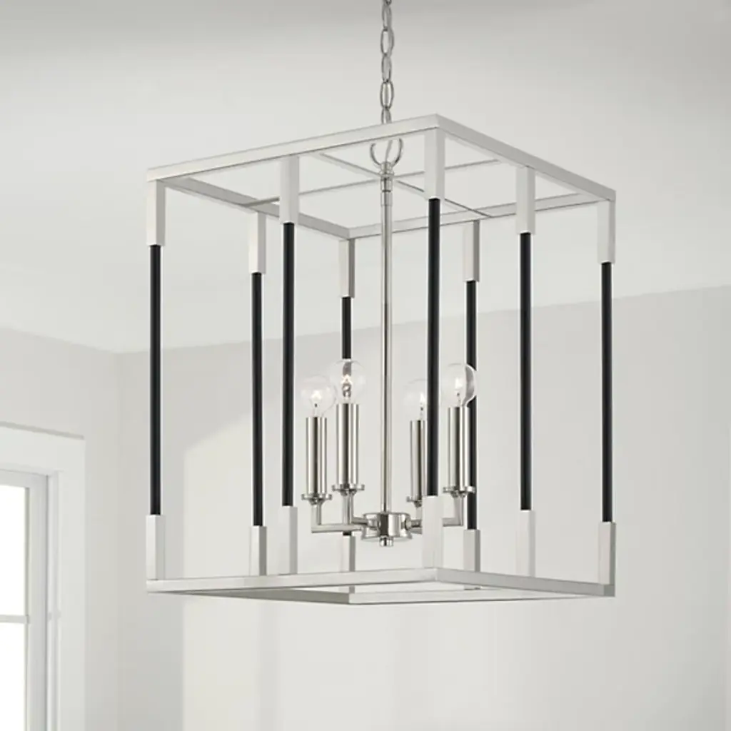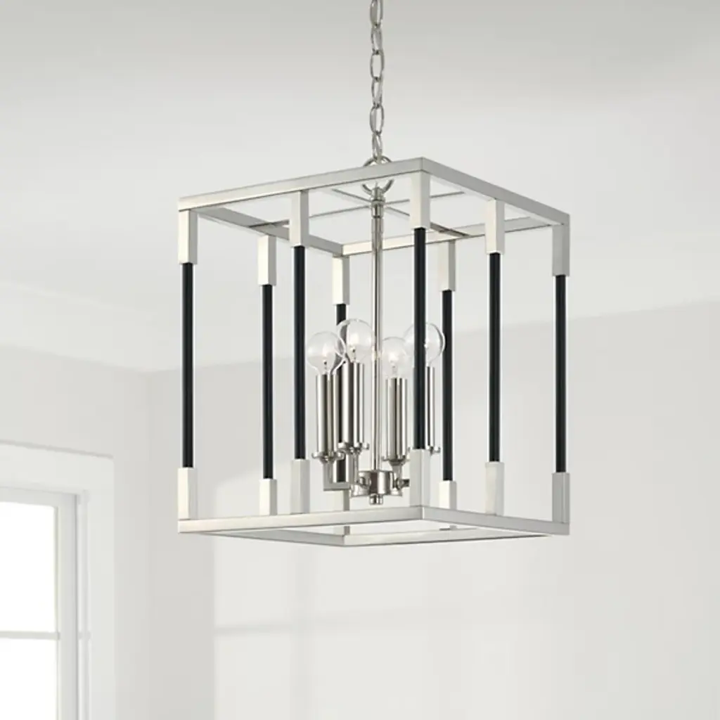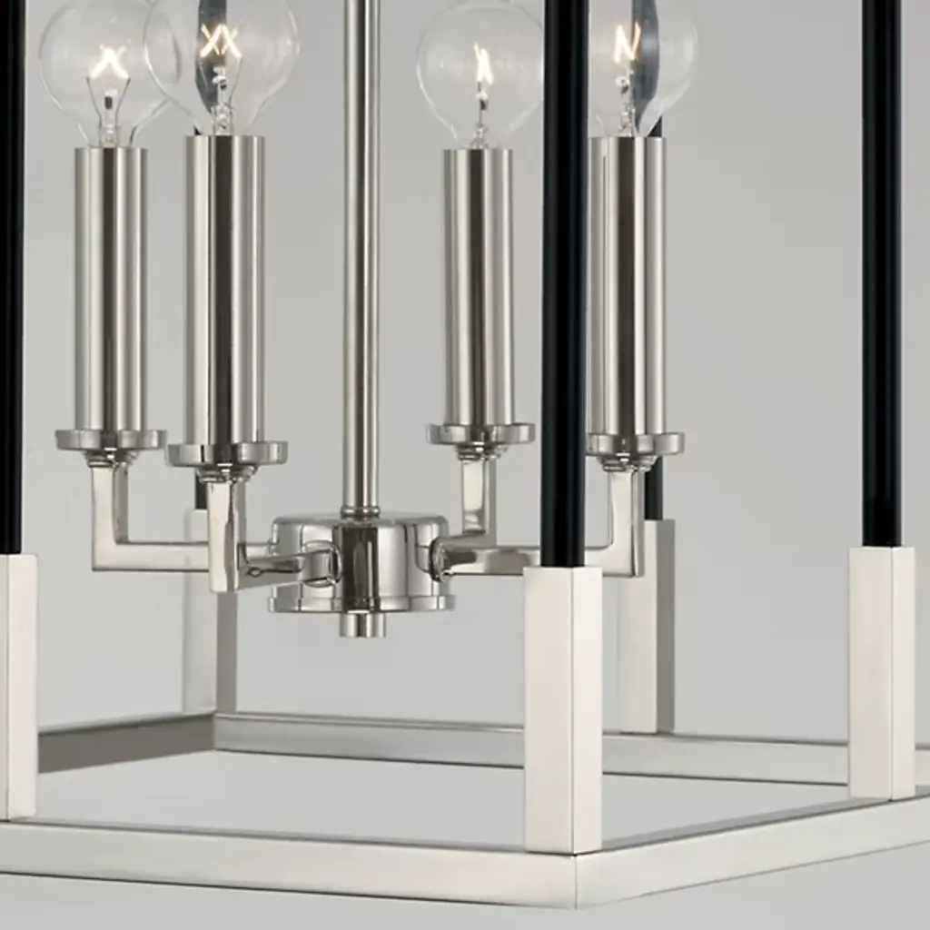 Decorate your living space with the chicly styled Bleeker Chandelier by Capital Lighting. A candelabra base provides the foundation for a group of incandescent bulbs. A square frame of metal surrounds these bulbs, giving your chandelier a cage-like appearance. A canopy at your ceiling secures the chandelier attaching to a beautiful, linked chain. The outer casing of the chandelier’s frame is slightly wider than the vertically oriented metal bars, creating a visual contrast that augments the Bleeker Chandelier’s transitional theme.