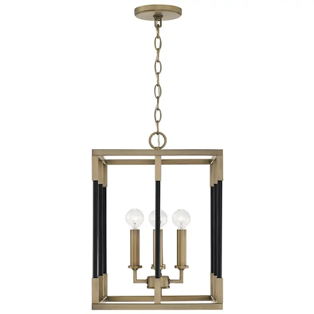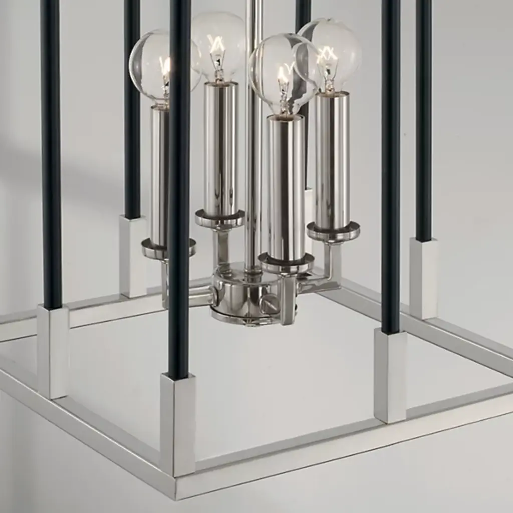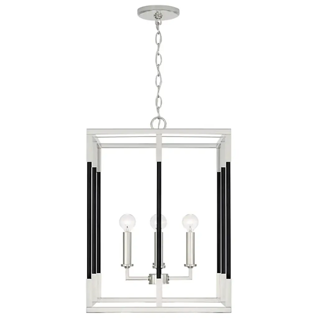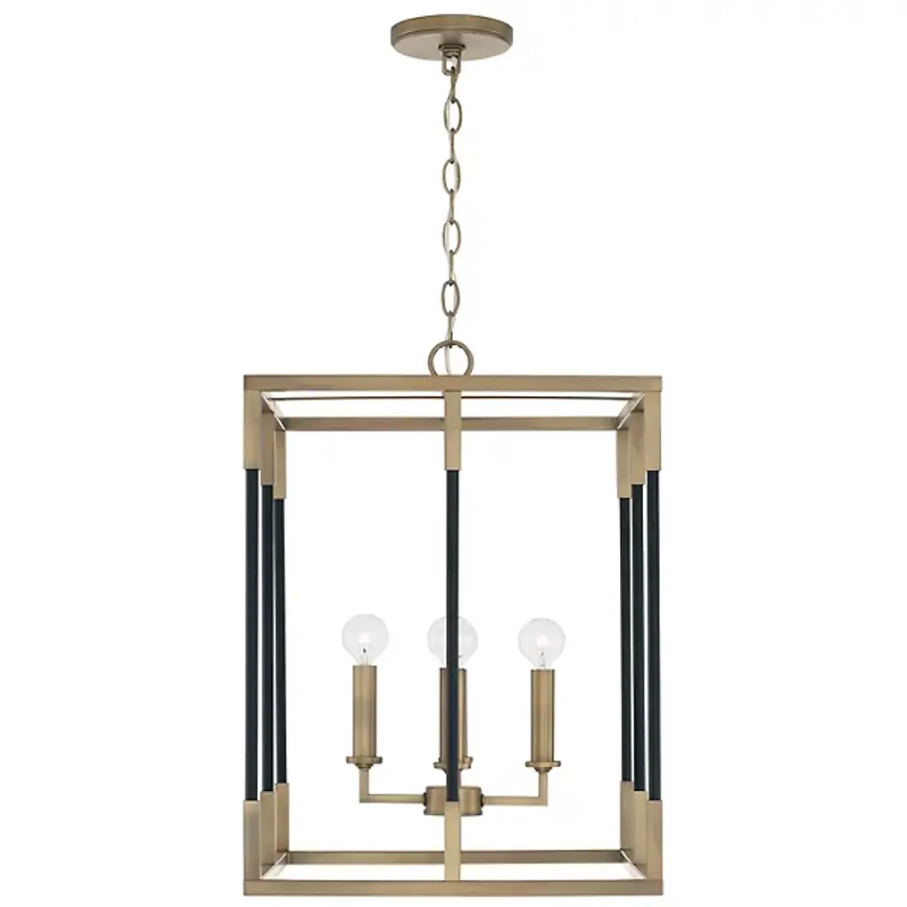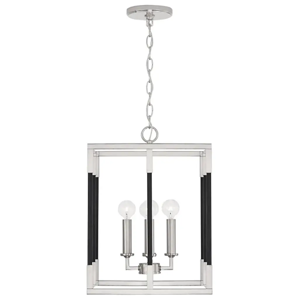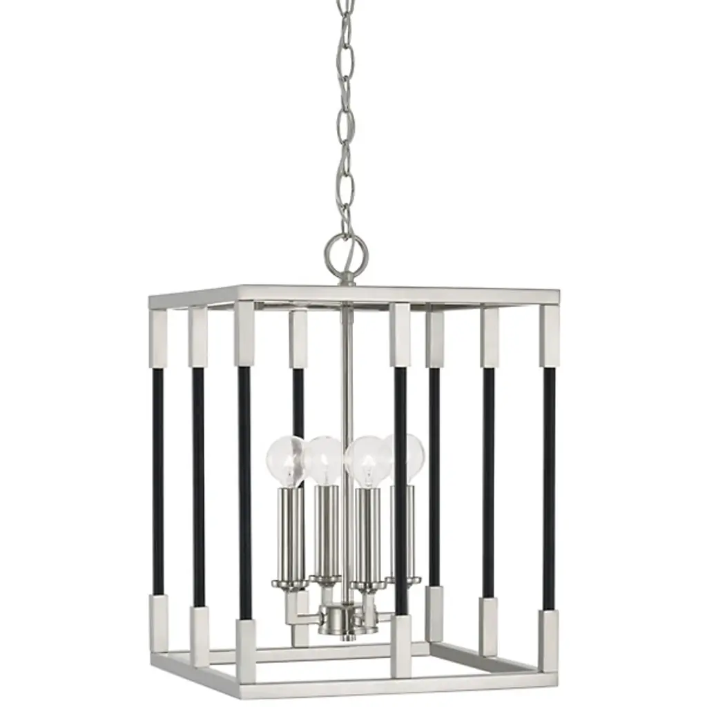 Decorate your living space with the chicly styled Bleeker Chandelier by Capital Lighting. A candelabra base provides the foundation for a group of incandescent bulbs. A square frame of metal surrounds these bulbs, giving your chandelier a cage-like appearance. A canopy at your ceiling secures the chandelier attaching to a beautiful, linked chain. The outer casing of the chandelier’s frame is slightly wider than the vertically oriented metal bars, creating a visual contrast that augments the Bleeker Chandelier’s transitional theme.