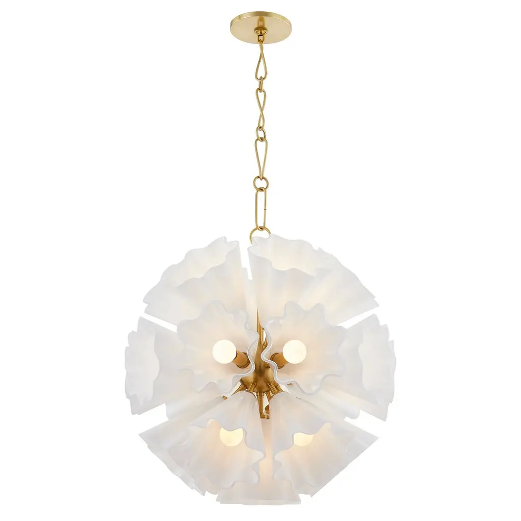 The defining feature of the Bloom collection lies in its enchanting glassware, meticulously crafted to resemble delicate and intricate flowers. The combination of the lustrous brass metal work and the floral-inspired glass elements makes this collection a captivating focal point for any space.