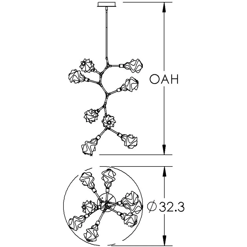 Blossom Led 31.8 Inch Matte Black Chandelier Ceiling Light In 2700k Led, Modern Vine