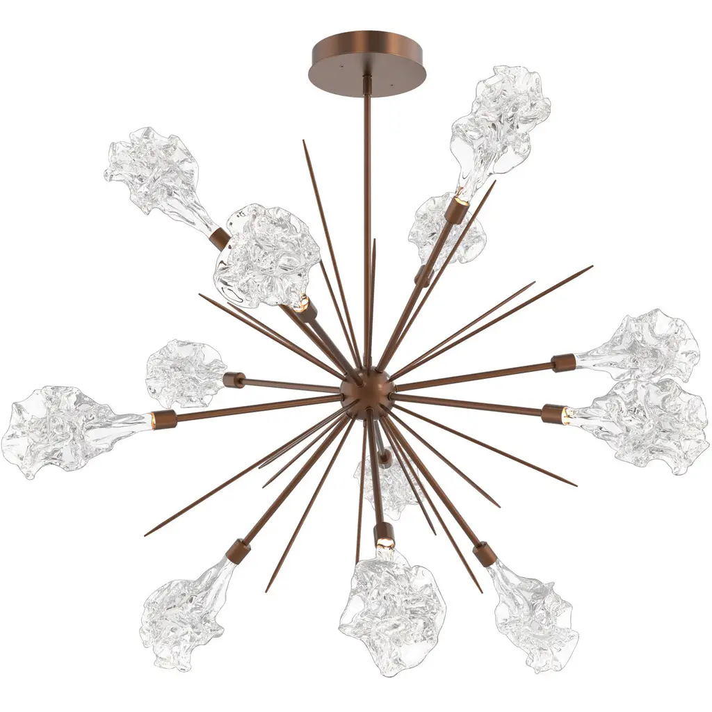 Blossom Starburst - 36-Novel Brass-Blossom Clear Blown Glass-Threaded Rod Suspension-LED