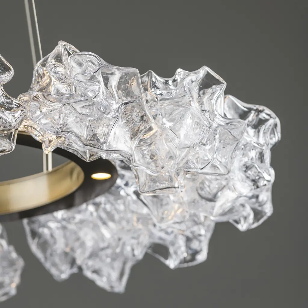 Blossom Ring Chandelier - 36 -Gilded Brass-Blossom Clear Blown Glass-Stainless Steel Cable-LED