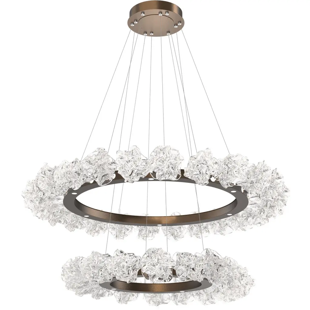 Blossom Ring Chandelier - 50-Gilded Brass-Blossom Clear Blownglass-Stainless Steel Cable-LED