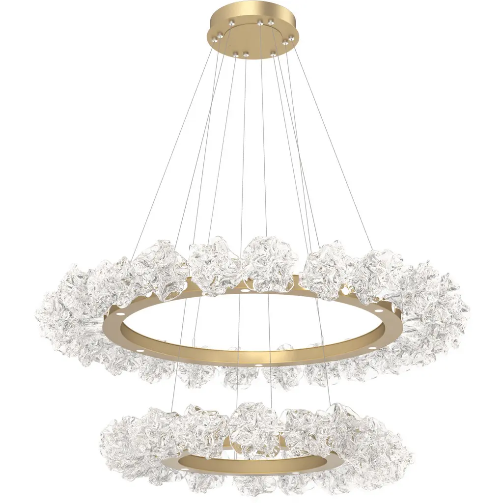 Two Tier Blossom Ring Chandelier - 2B-Novel Brass-Blossom Clear Blownglass-Stainless Steel Cable-LED