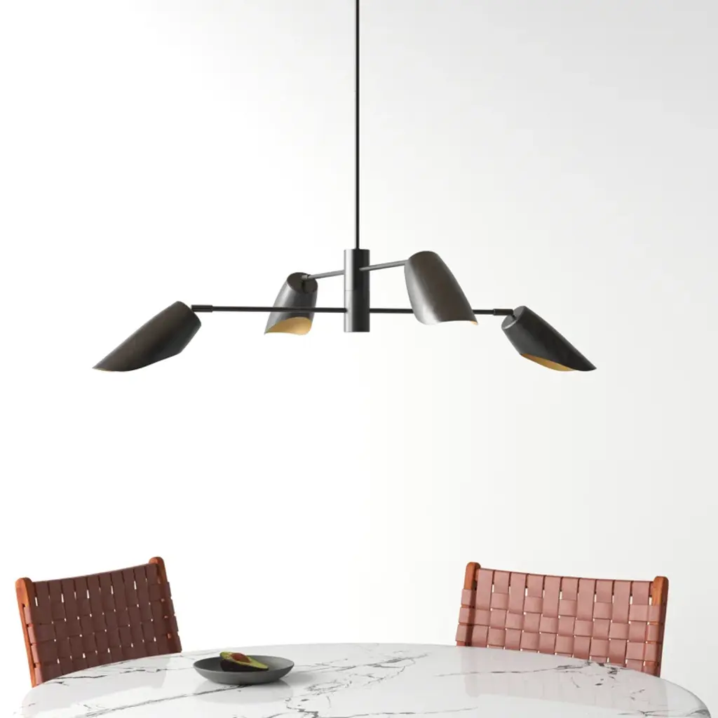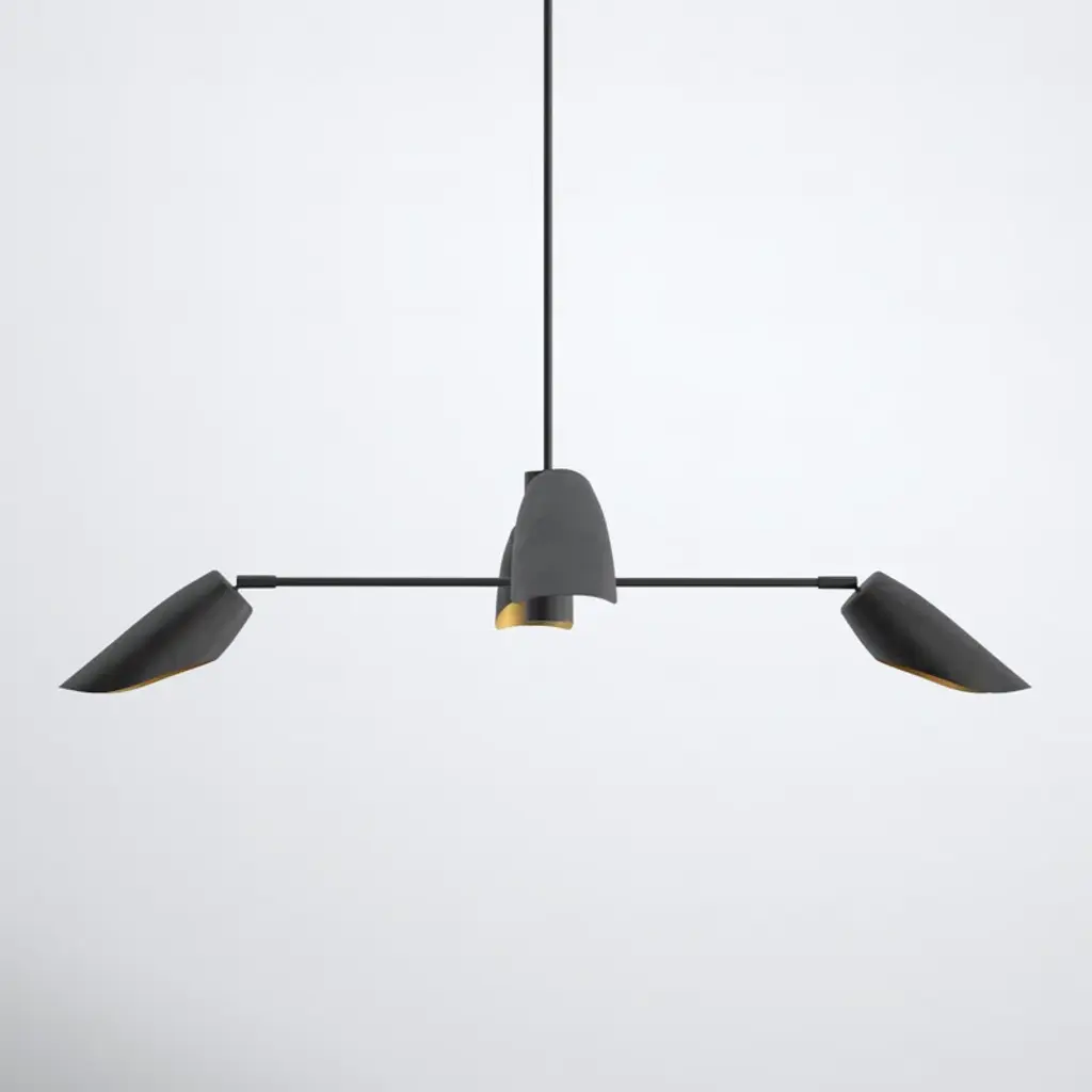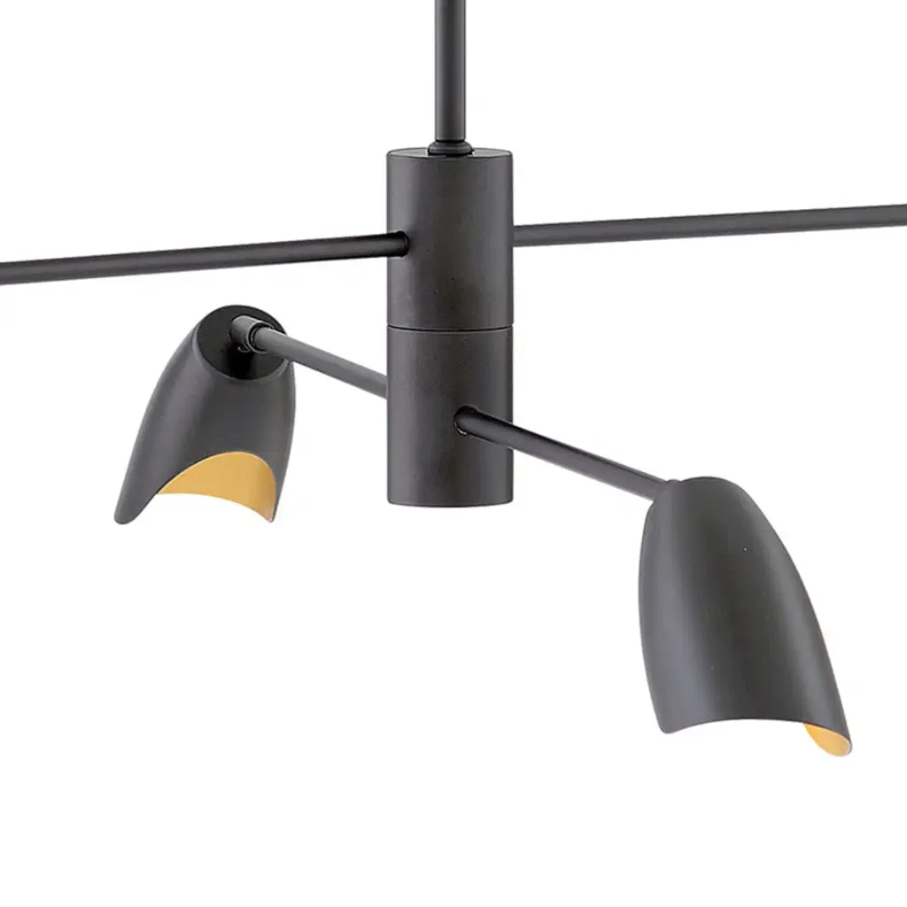 This 6-light chandelier draws on the iconic mid-century sputnik chandelier, but layers in a sleek update with its streamlined cone shades and pared-down arms. Crafted from metal, this chandelier features six lights set opposite from one another on three adjustable rods. A cone shade with a scalloped cutout along the bottom sits at the end of each arm, directing the light of the integrated LED light out and down. At 50'' in diameter, this expansive chandelier makes a statement in larger rooms like kitchens or open living spaces. It's also compatible with dimmer switches and sloped ceilings.