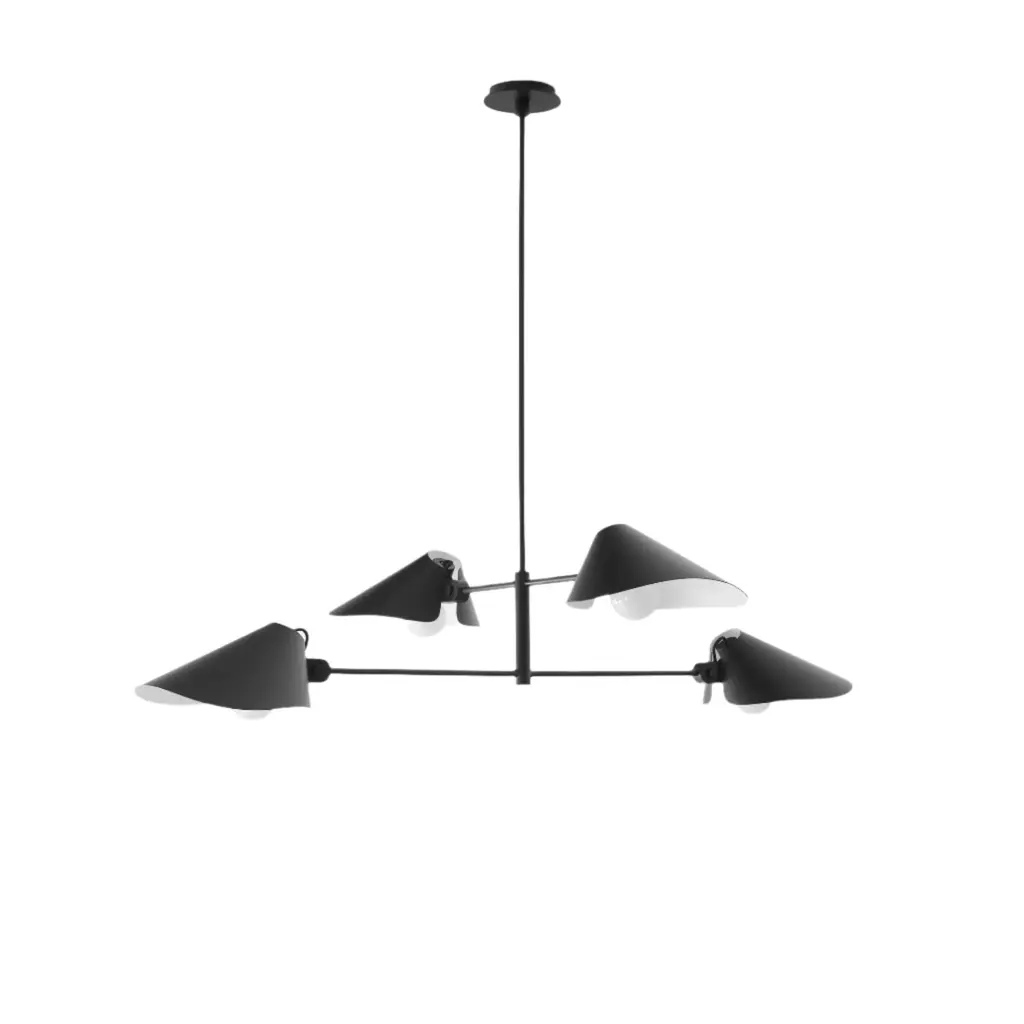 Indulge in simple elegance with &Tradition's Bonnet Chandelier. Its sleek, curved aluminum shades can be rotated up to 180 degrees, providing precise lighting direction for any mood or space. Crafted by Space Copenhagen, this versatile chandelier is perfect for bringing a warm glow to dining tables and seating areas. Highlights